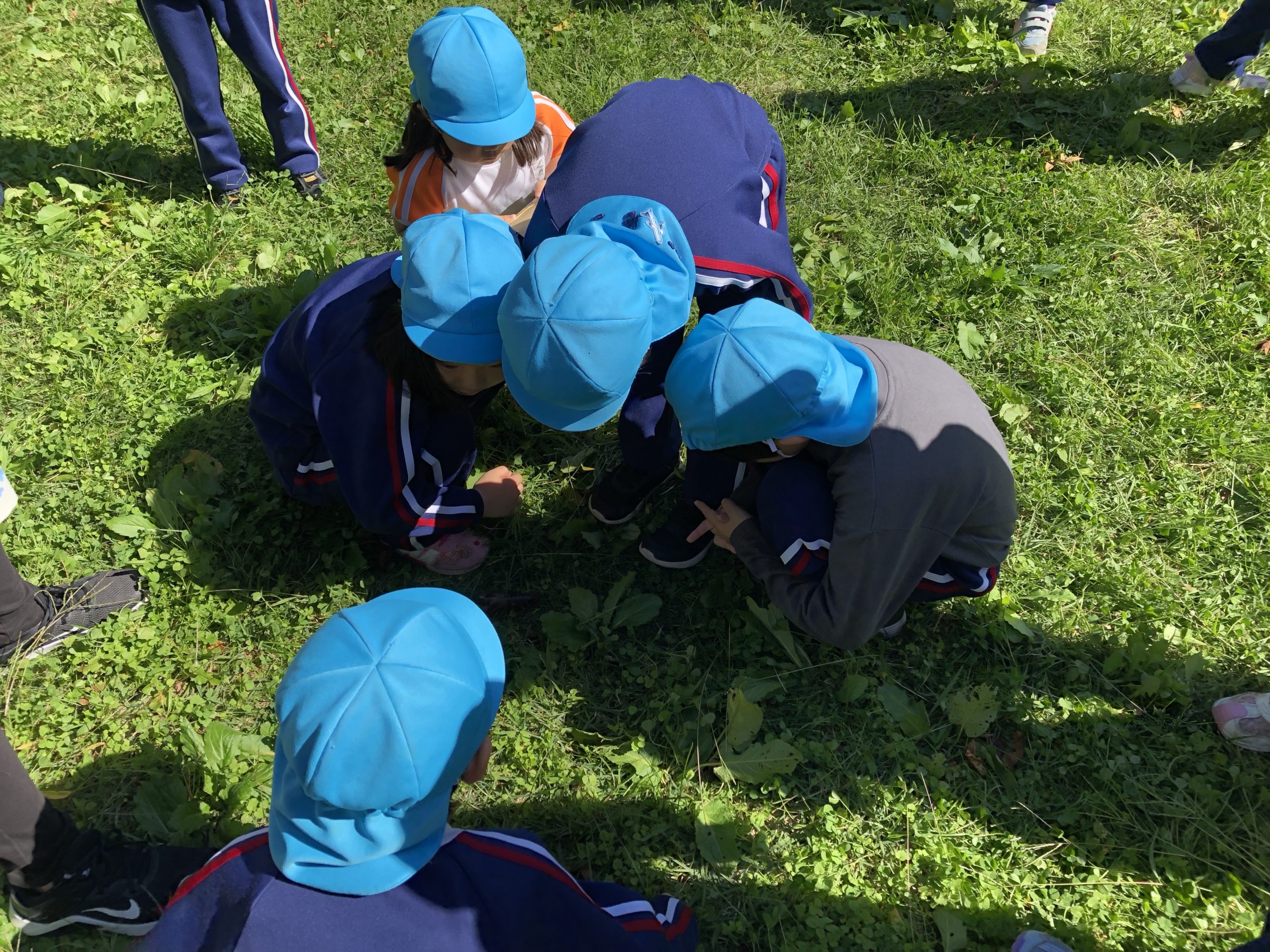 あ!!ザリガニ!! 2021.10.14 今日、年長組は梨木公園に行きました。 ひろーい公園で走ったり虫探しをしたりしていると‥ のそのそと歩く物体が‥。 なんと!!所々背中に土がついている大きなザリガニでした。 草むらの中なので踏んづけたら大変!!と、慎重にその行くすえを心配する子どもたち。 池はあっちだよ‥。 連れて帰りたいという思いがあったようで、今度来る時は何か入れるものを持ってこようと相談している子どもたちでした。