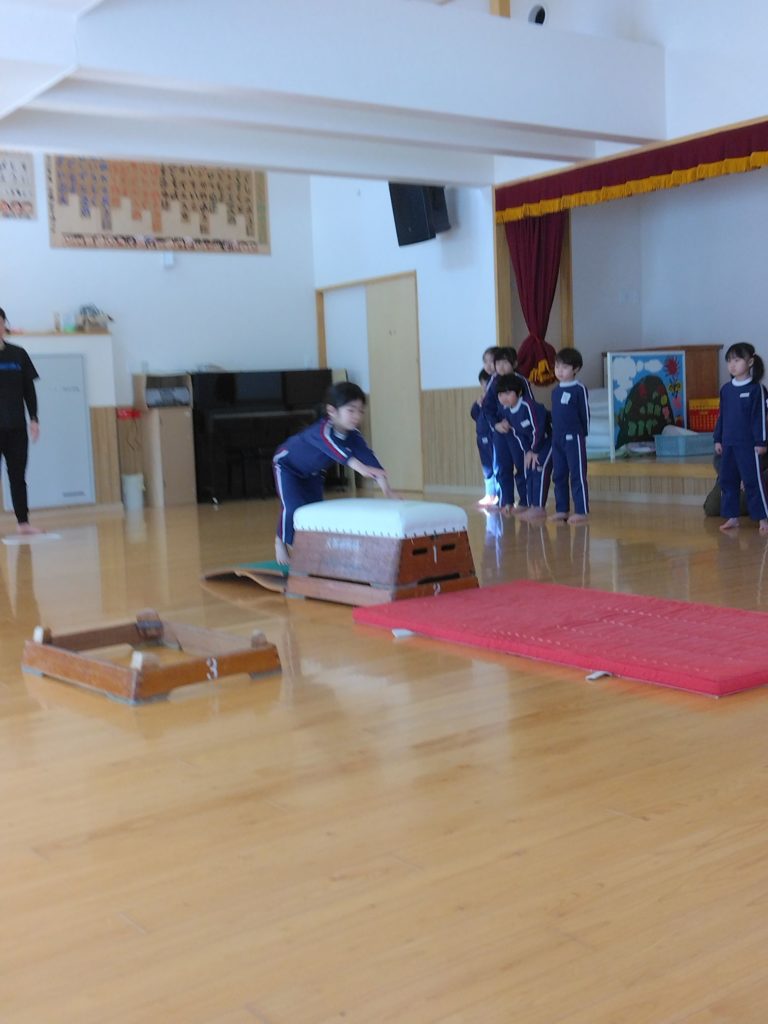 すみれ組の子どもたちも1段からの跳び箱に挑戦しています!ワクワクしながら意欲的な子どもたちでした!