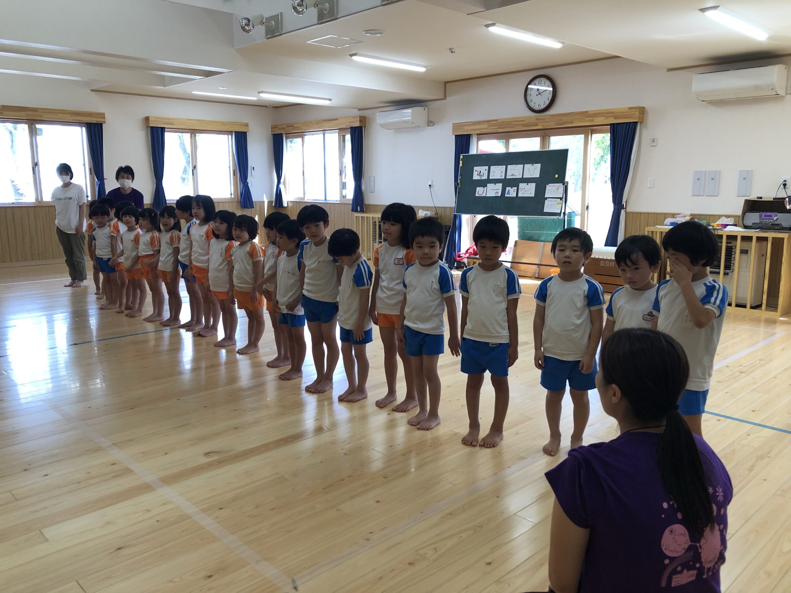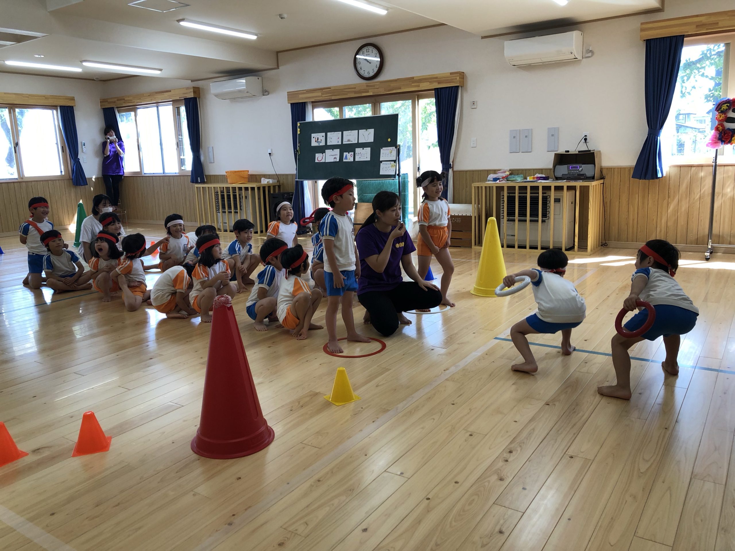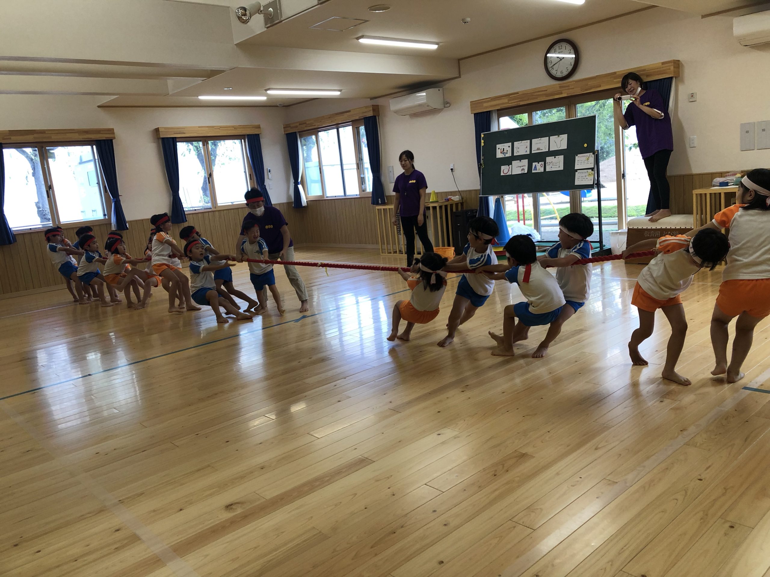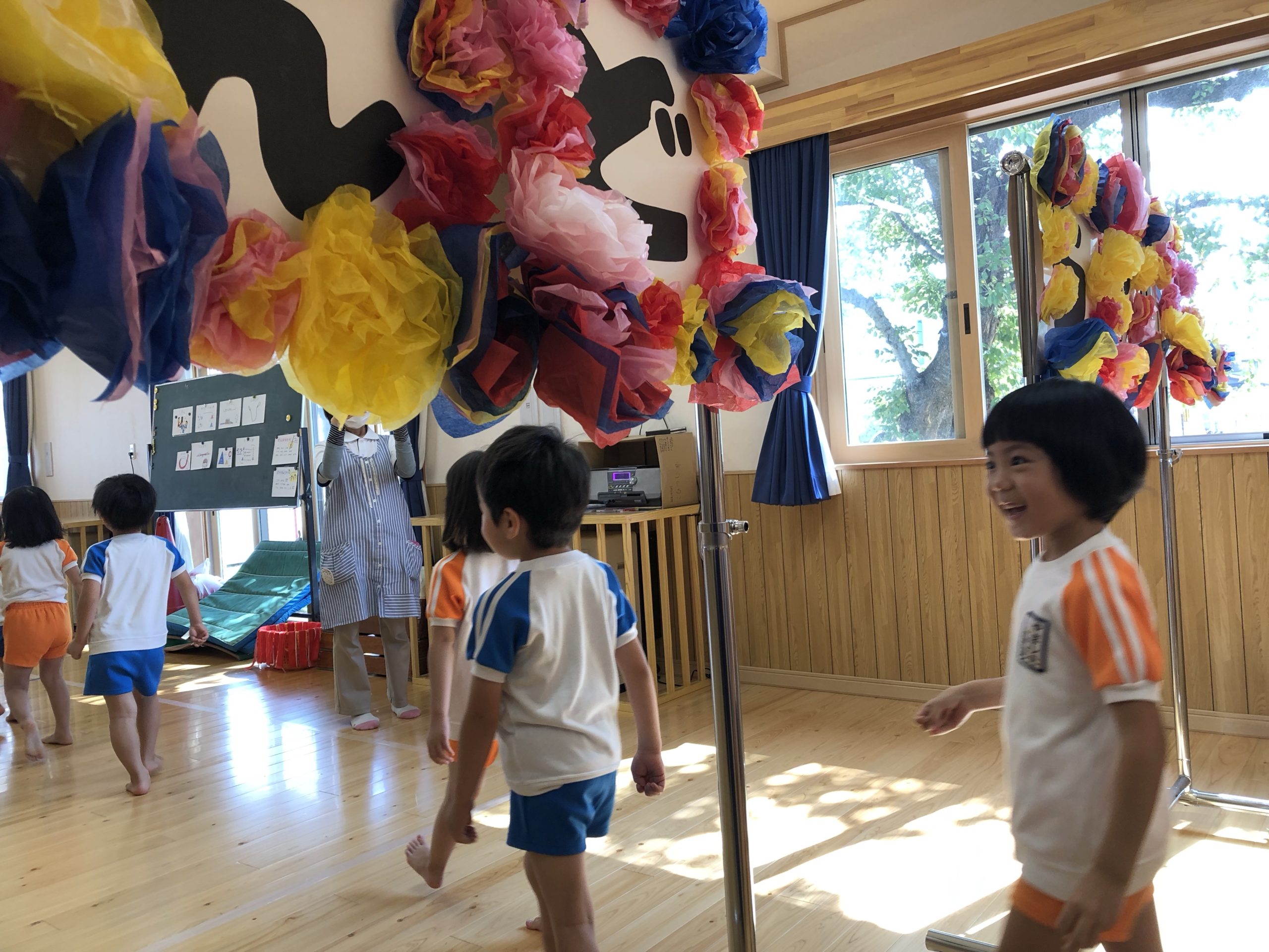 うんどうの日 2021.09.15 今日は年長さん(ゆり組)のうんどうの日でした。数年前に運動会を改めてうんどうの日としています。 9時45分開始。 廊下から遊戯室への移動は、自分たちで飾りつけた入場門を右側、そして左側と分けた間を入場しました。 リズムから始まり最後はリレーで終わりました。どの競技も見応えのあるものでした。この姿を生のまま見せることができないのがとても残念でした。 いろいろな感情を味わった子どもたちです。素敵なこどもたちでした。