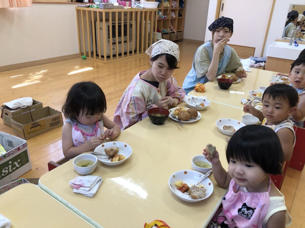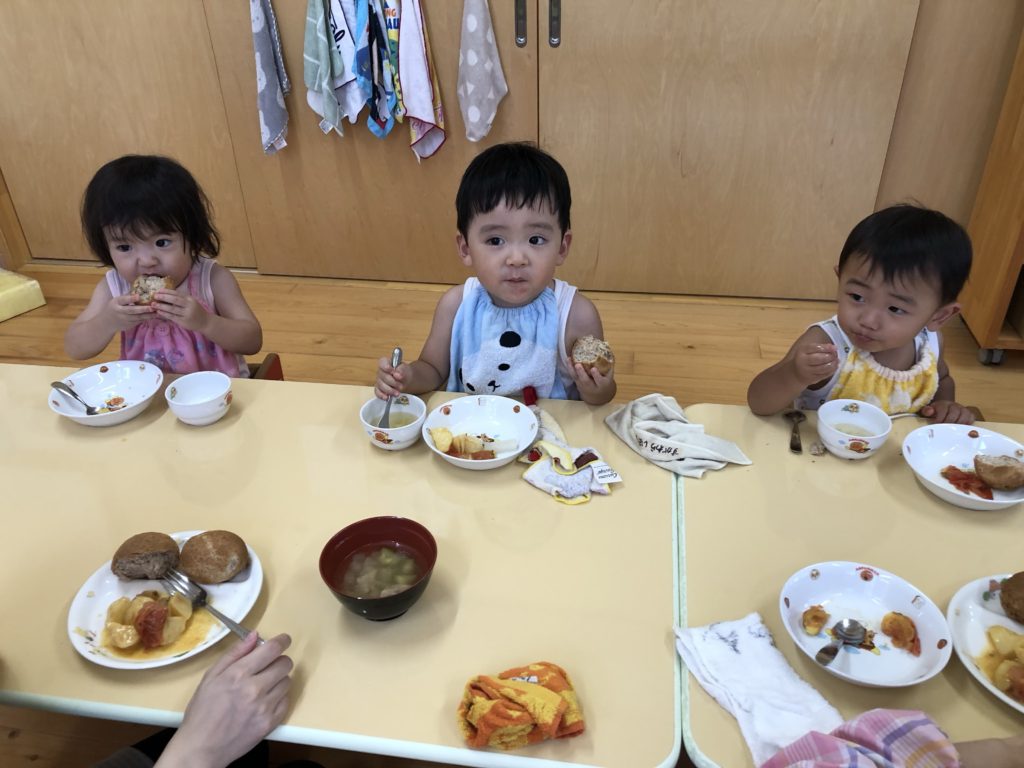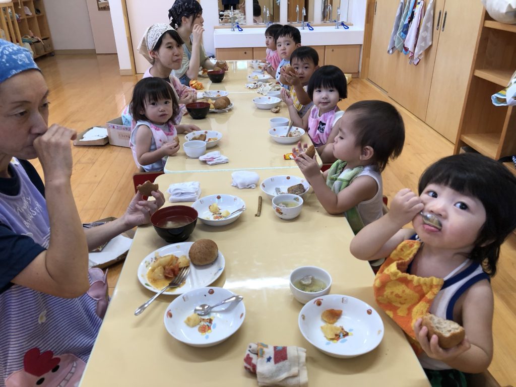 汗いっぱいかいた身体をシャワーで流してもらってさっぱりしたあとは給食です!!