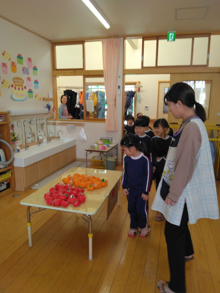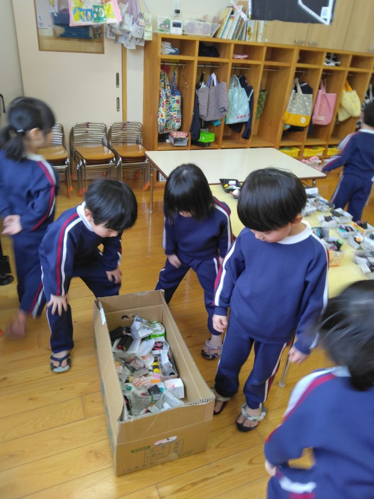 お店屋さんごっこ3 2025.02.14 お店屋さんは3つのお部屋にあります。各部屋に数店あるためどこで何を買うかよーく考えなければ使える6枚のお金はあっという間になくなってしまいます。 ということで、お店がオープンする前にお店を見るツアーをします。 ここにもある~ 「なんだかいい匂いするよ」の先生の声に鼻を近づけて匂いを嗅ぐ子どもたち。「いい匂いするね~」と笑顔になりました。