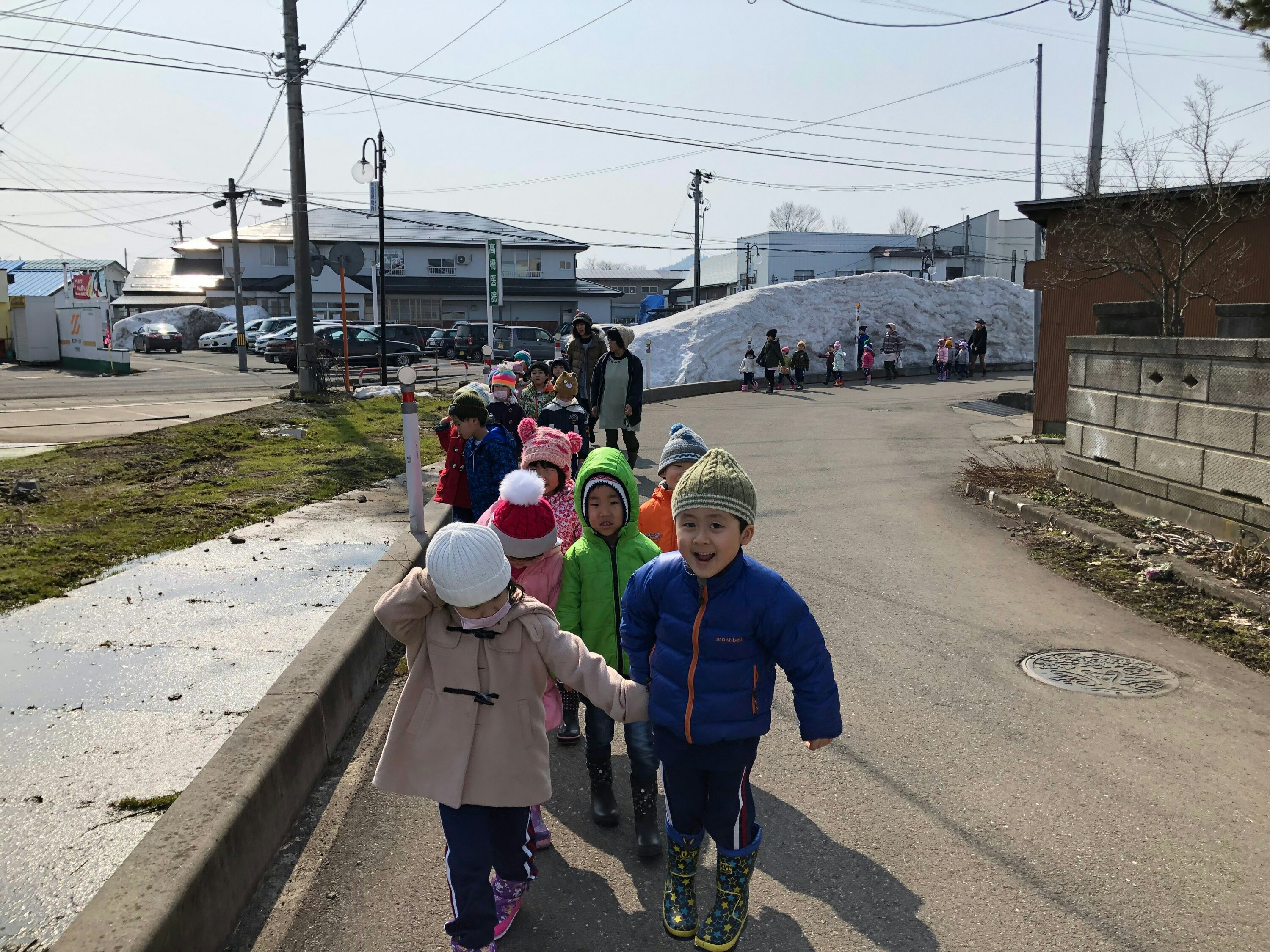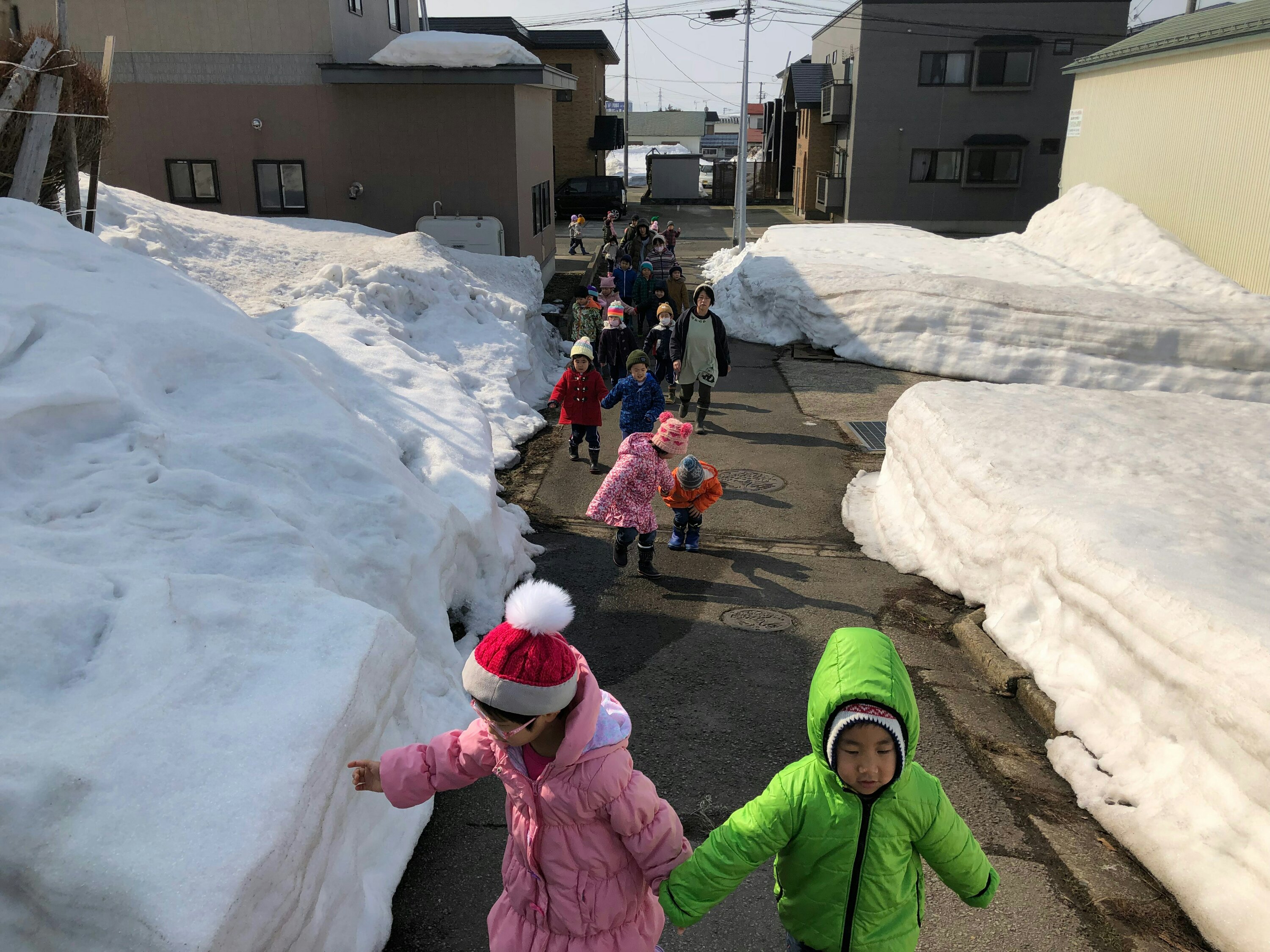 今日は、それぞれのクラスで散歩にでかけたり、雪遊びをしたりと戸外での活動を楽しみました。