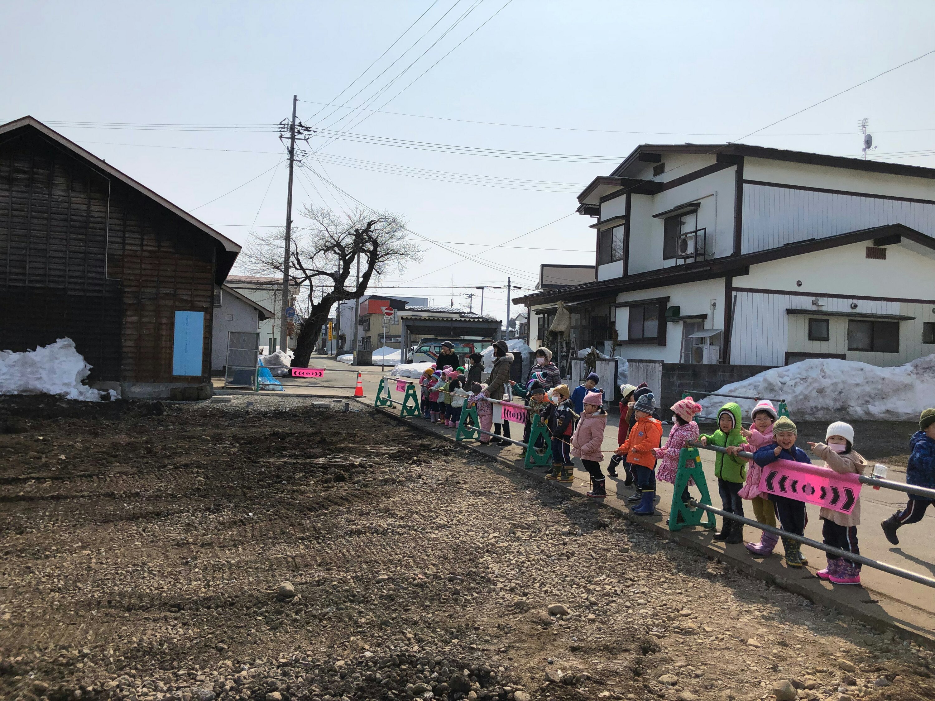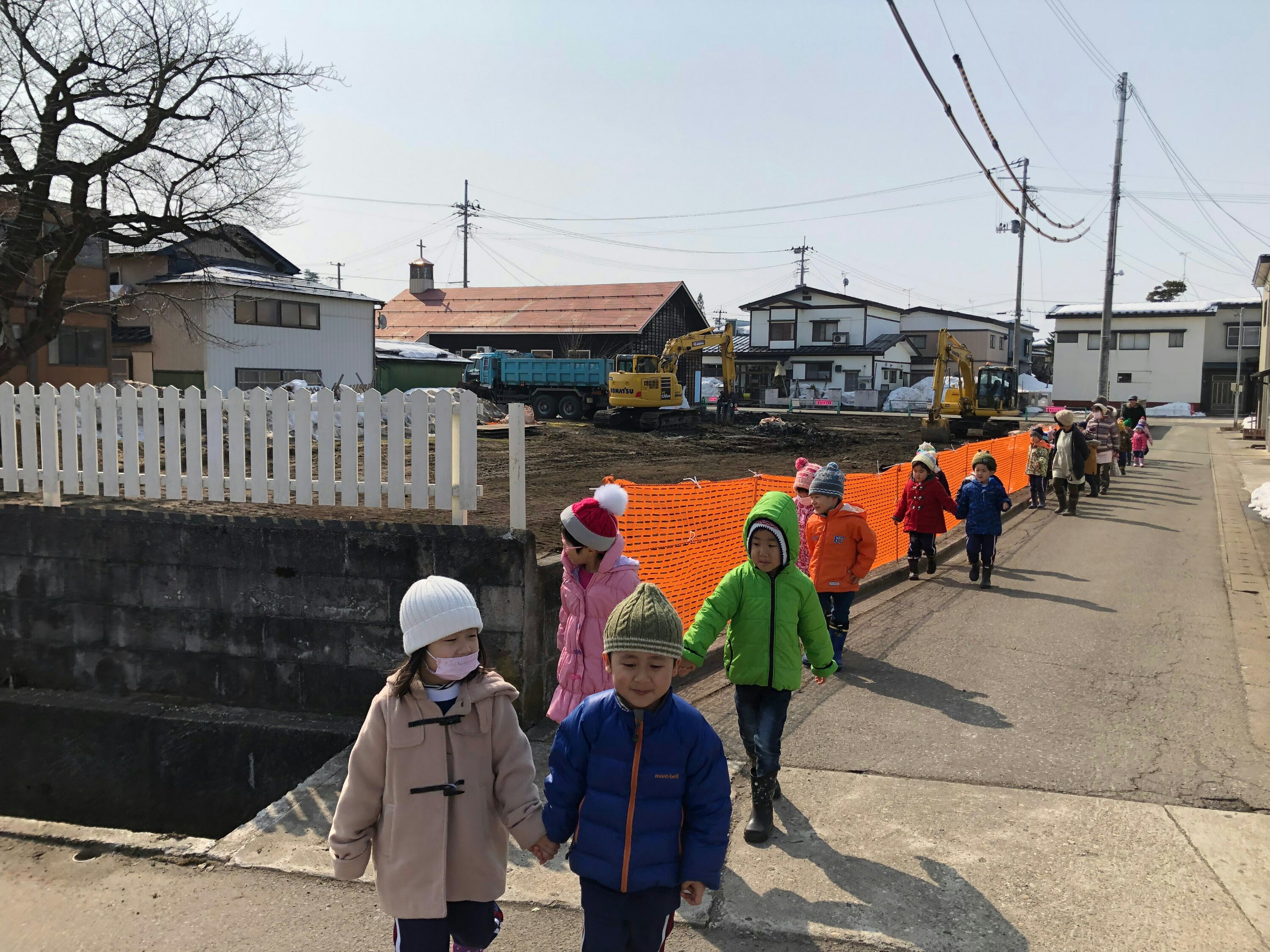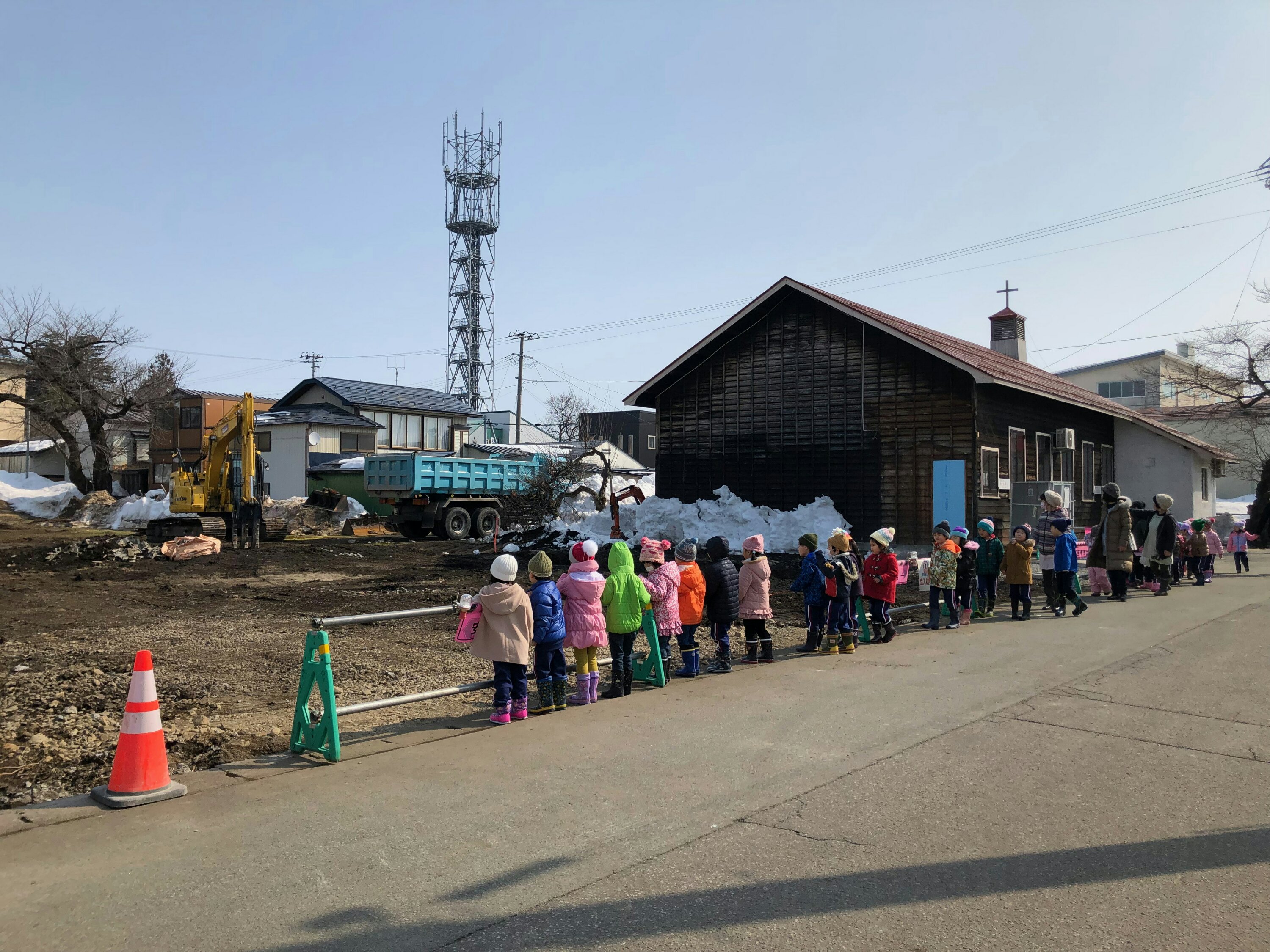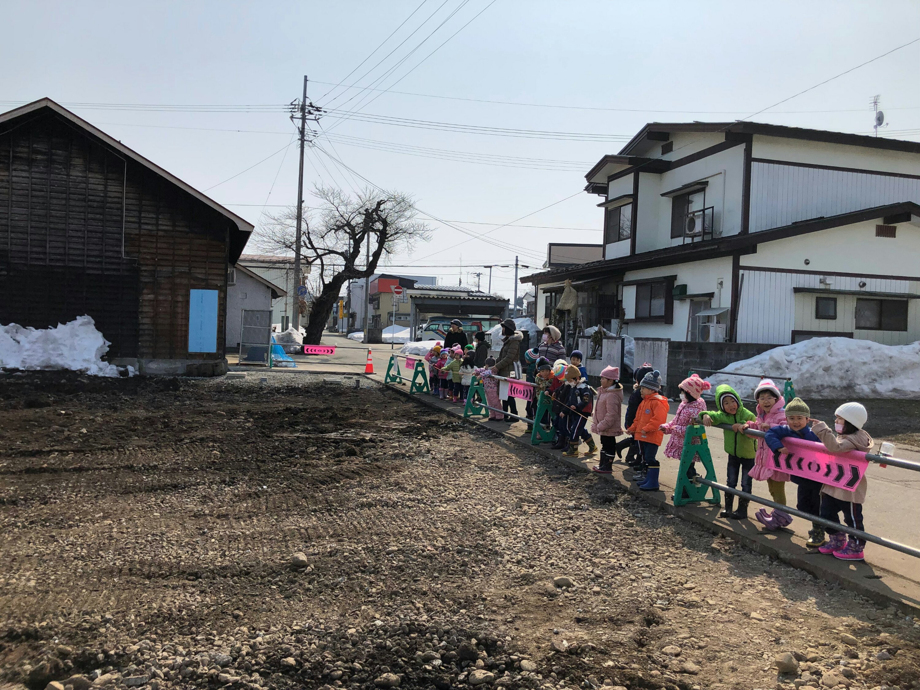 この間まであった建物があっという間に無くなってしまい、なんだか不思議な感じです。ずっと見ていたい気持ちを押さえ、仮設園舎へと帰りの足を向けました。