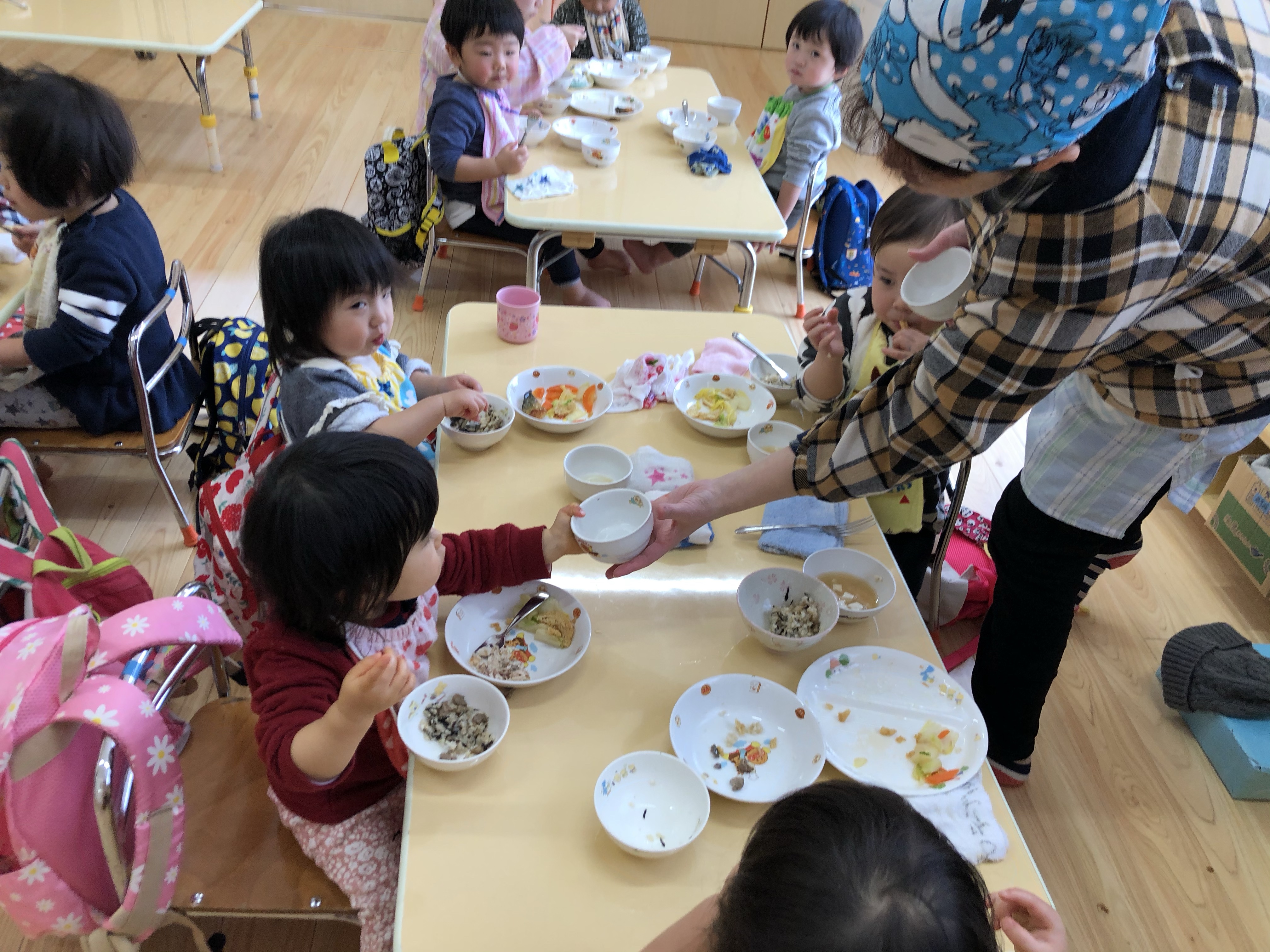 子どもたちモリモリ美味しそうに食べ「おかわりー!!」