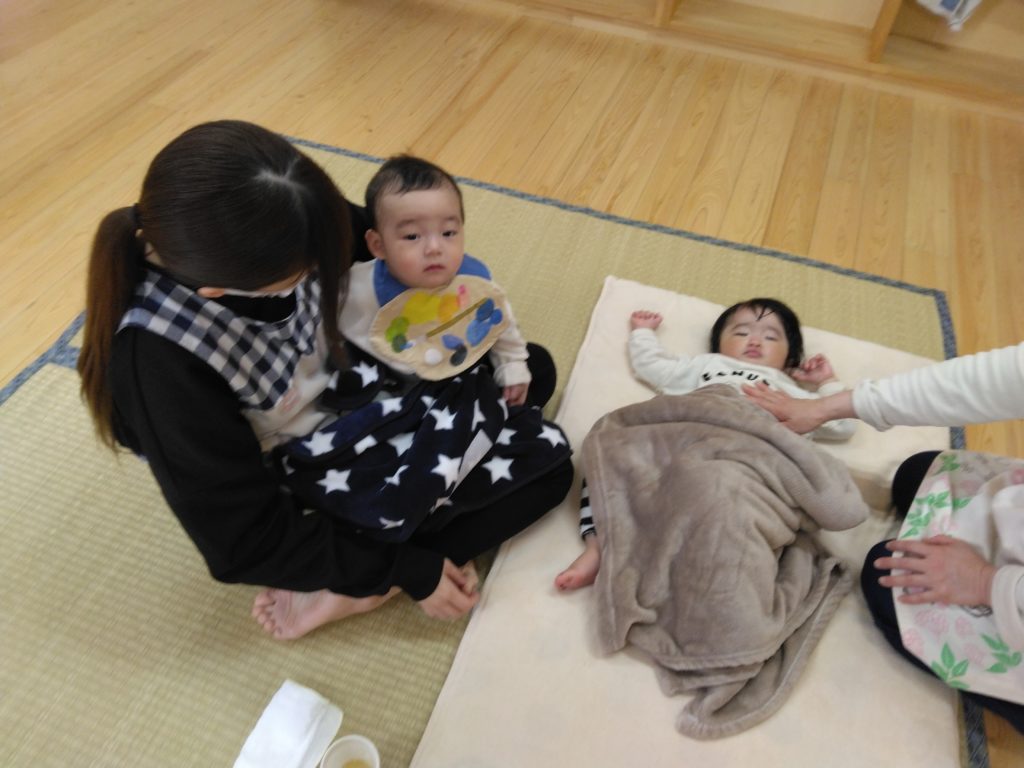 もも組のお部屋は午前寝をしていました。そろそろ起きたかな?