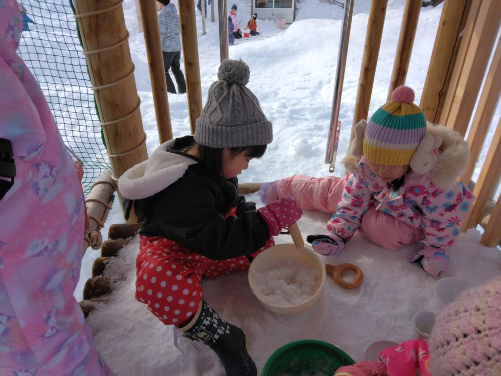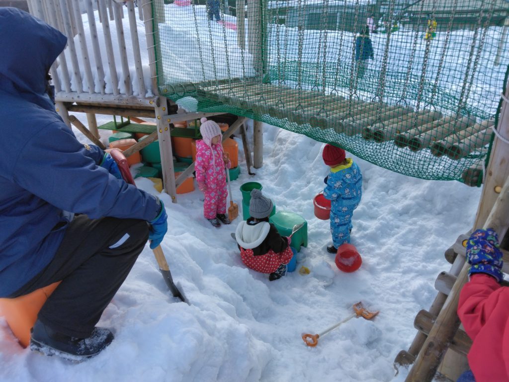 今日たんぽぽ組では朝から雪遊びを楽しみました。