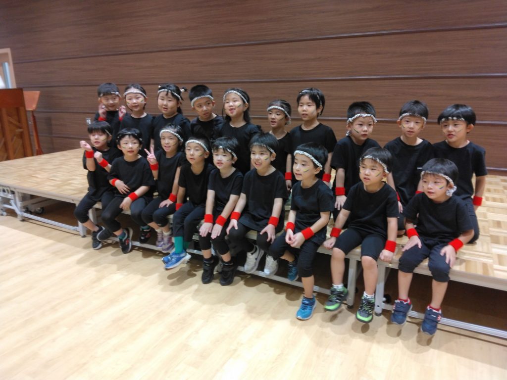 7日の土曜日は十文字町の祭りで町内の就学前の子どもたち(年長児)の交流会があり、一緒によさこいを踊りました。