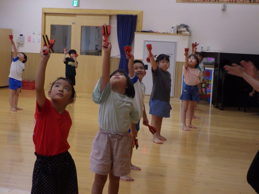 よさこいを踊るときには雨が上がり、町内の4施設の子どもたちは楽しんで踊る事ができました。
