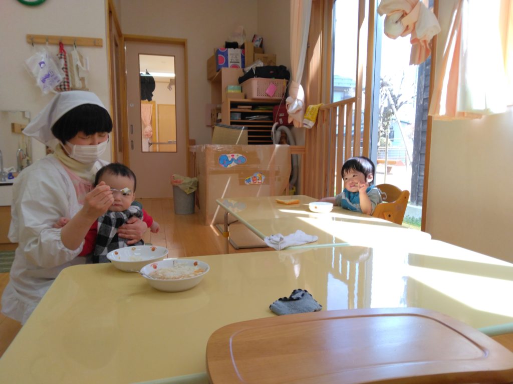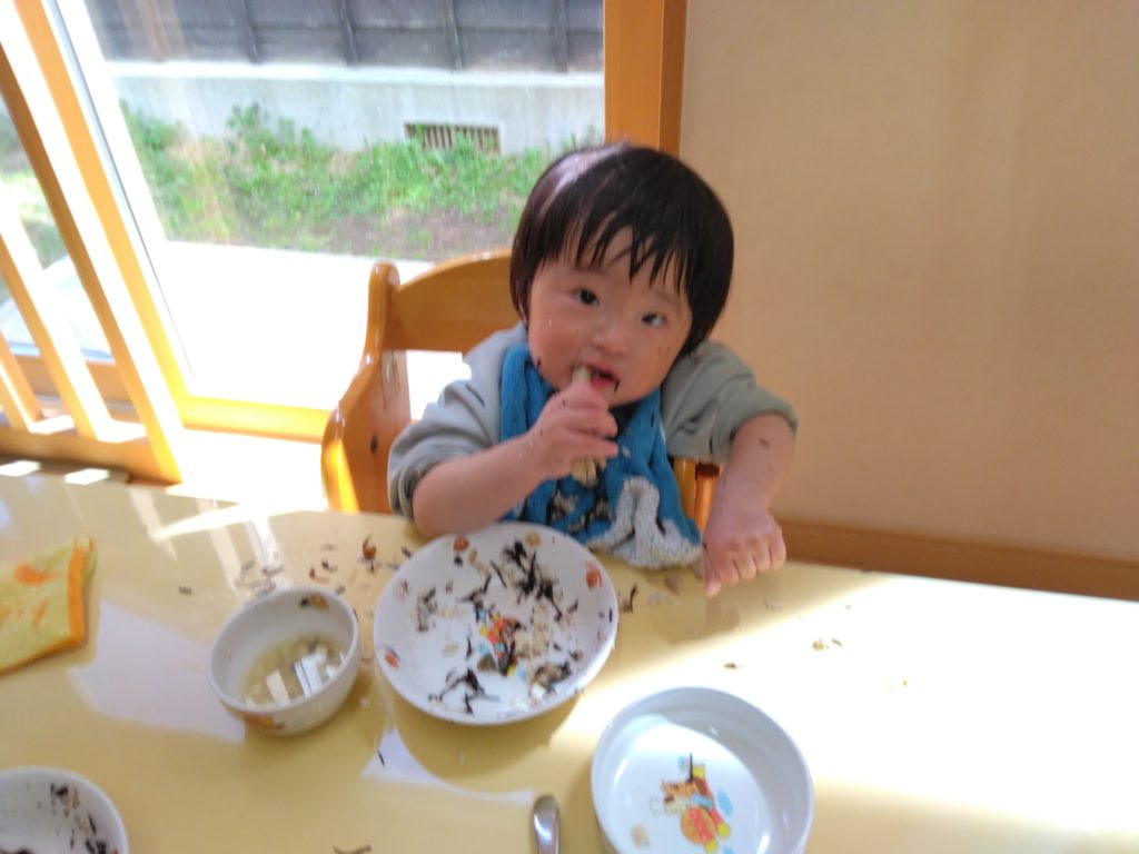 よーくカジカジしてね。 2023.04.17 もも組さんの給食は水煮の野菜を咀嚼してからごはんやおかず、味噌汁を食べます。 発達に合わせて大きさを変え、手でつかめるように小さく切りすぎないようにしています。 この日もカジカジして…。 たくさん食べていました。