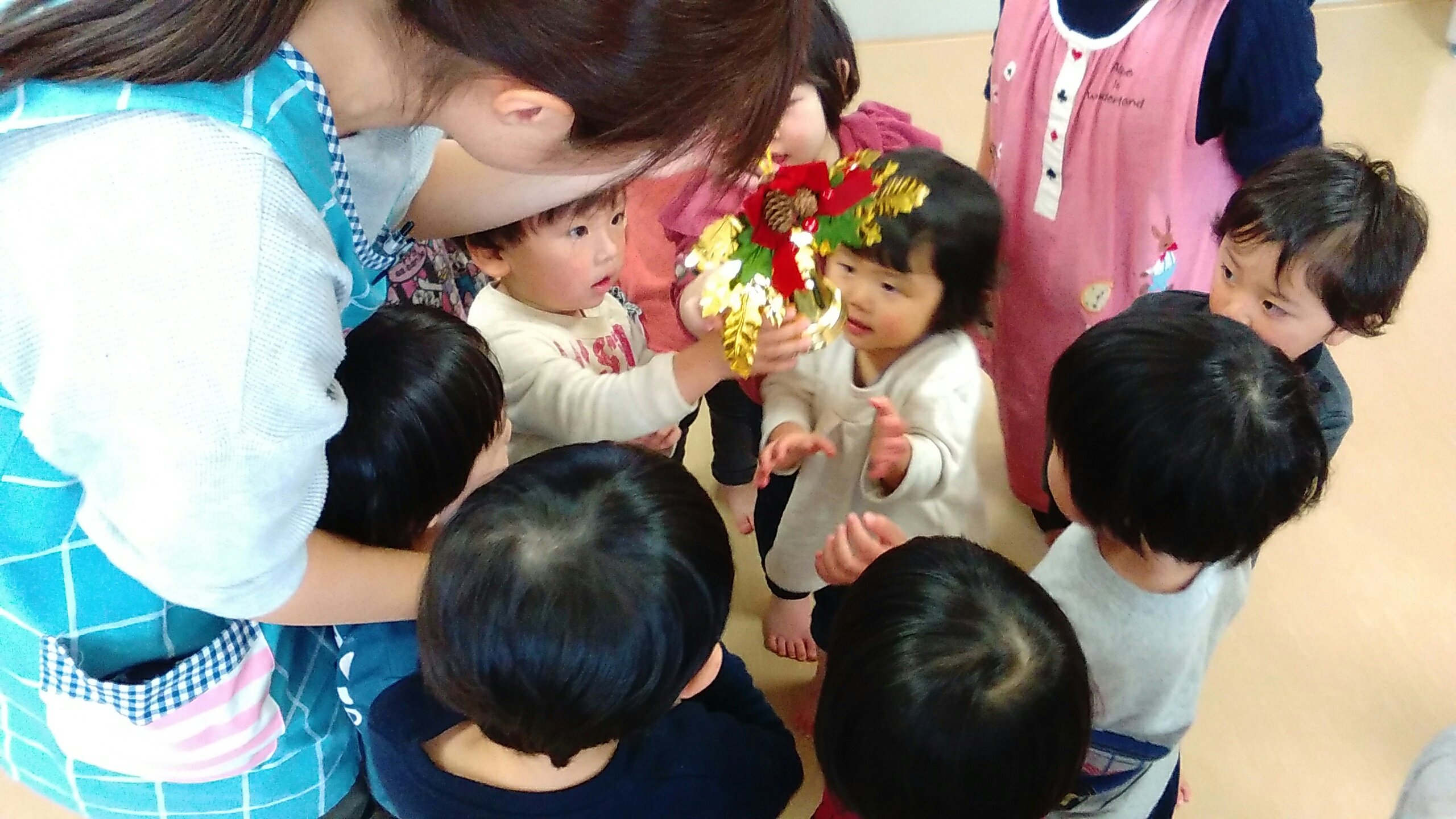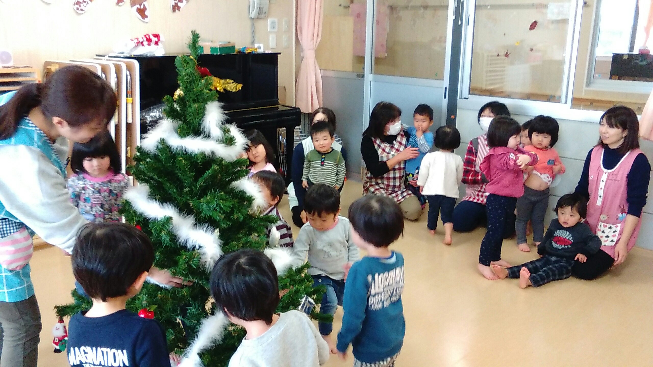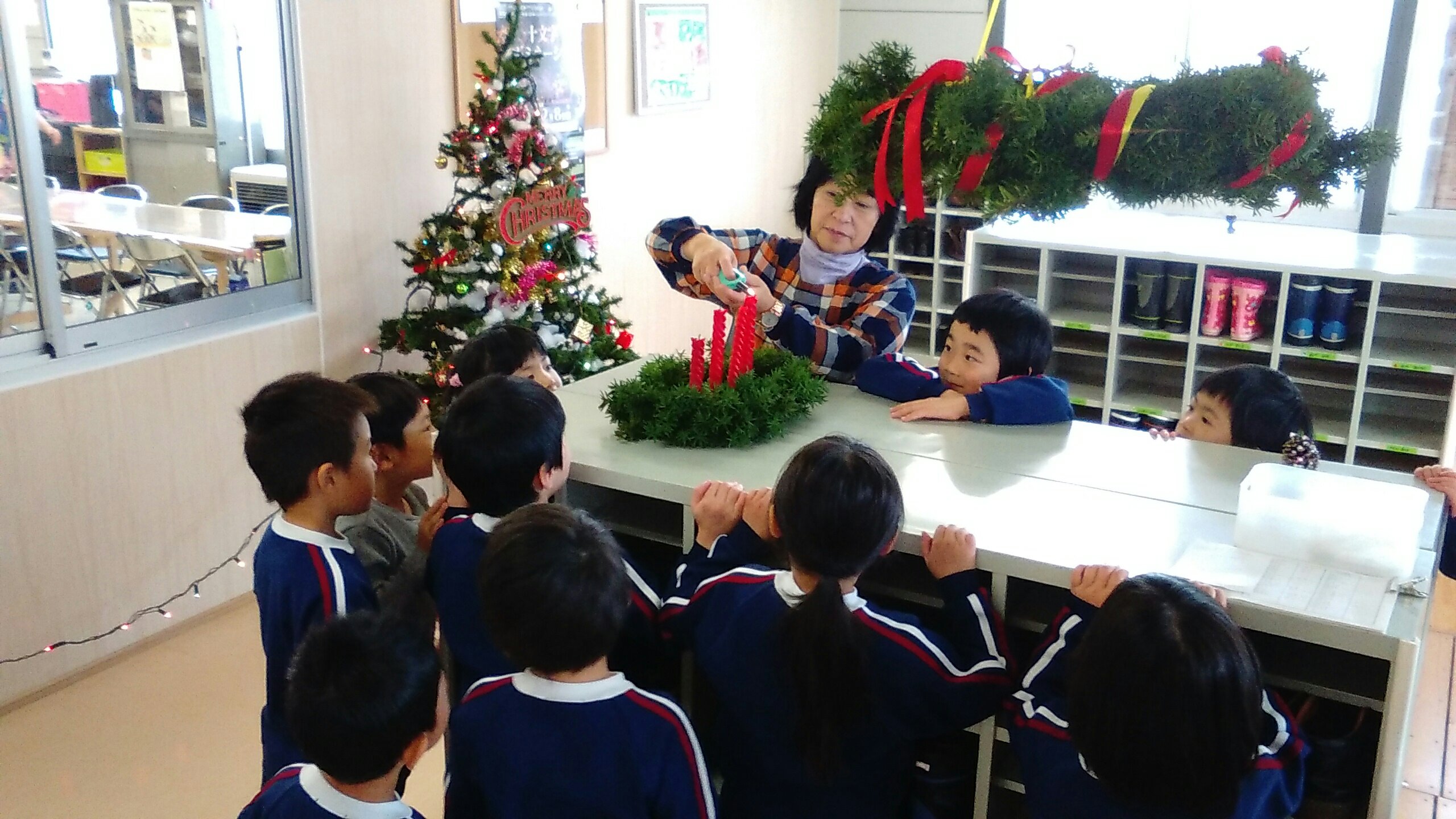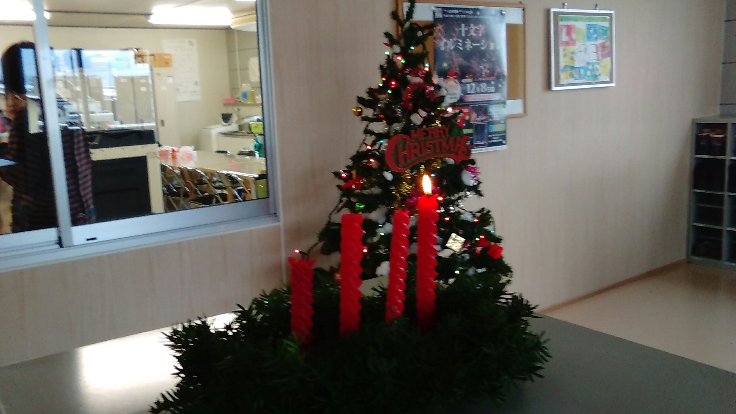 園でもアドベントを迎え、玄関のキャンドルに灯りが点りました。未満児のクラスでもクリスマスツリーが飾られ、クリスマスに向けての準備が行われています。