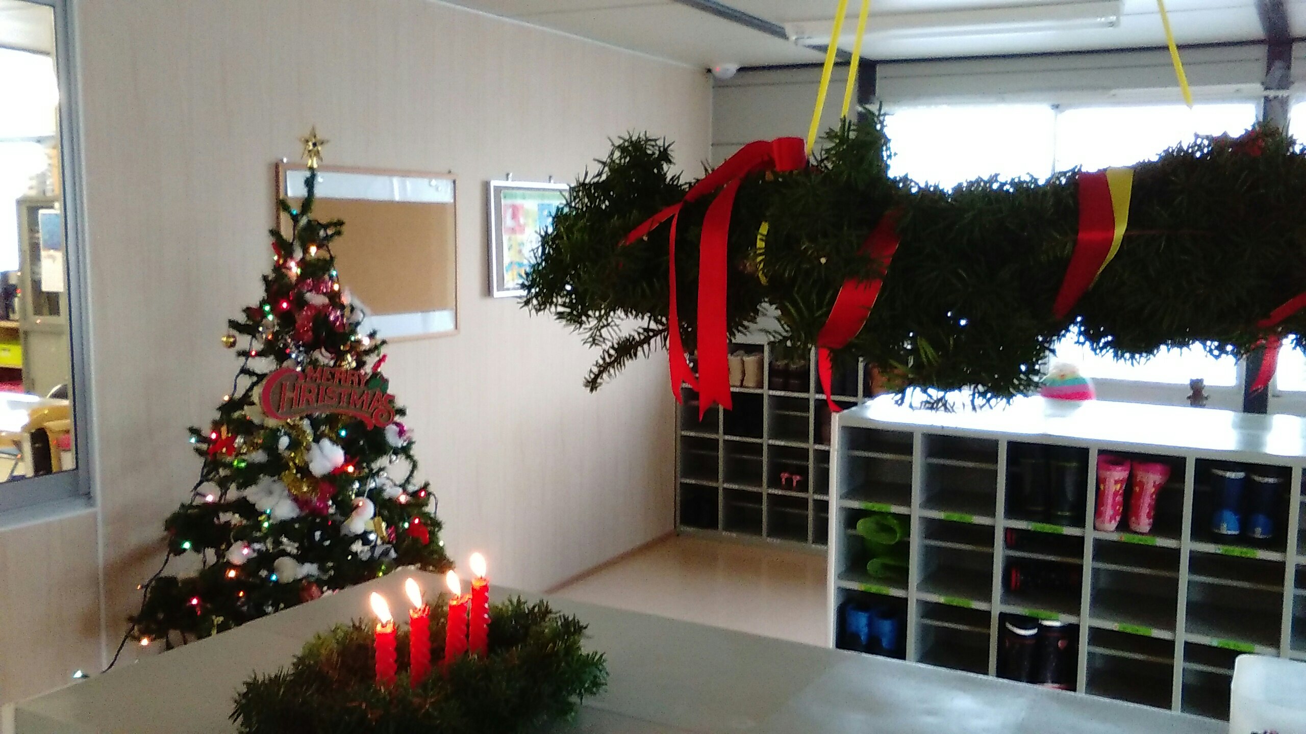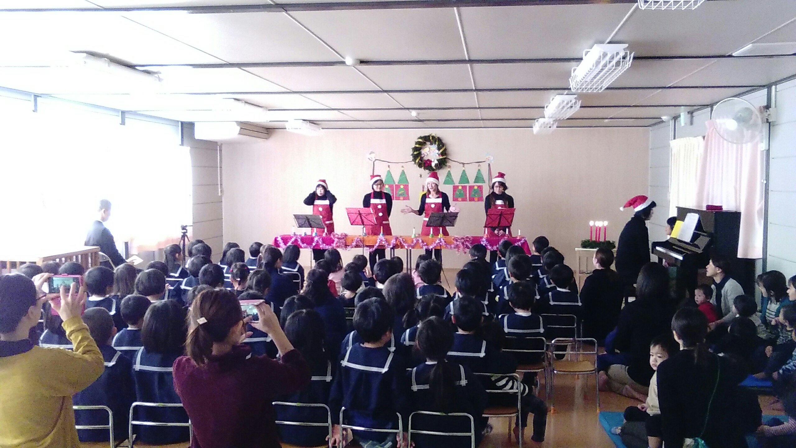 園ではクリスマス礼拝が行われ、保護者の方も何人か来てくださり、今年もイエスさまのお誕生をみんなでうれしい気持ちでお祝いすることができました。