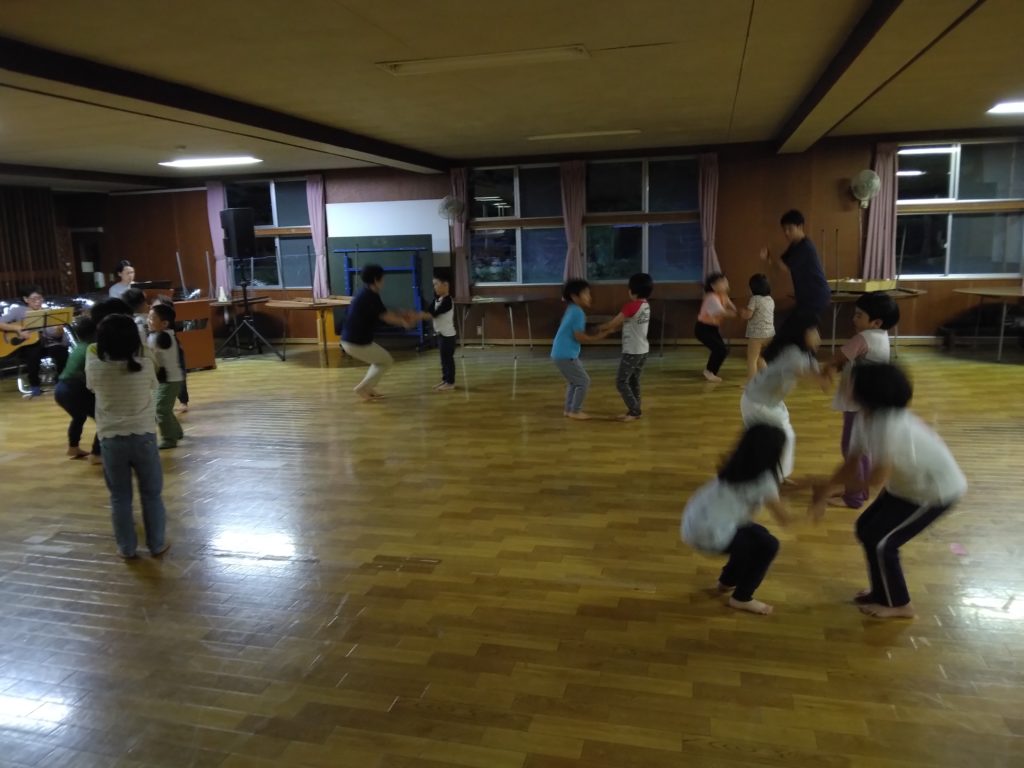 今日のキャンプファイヤーは雨の為、ホールの暖炉に薪を入れてもらってその火を見ながらの礼拝となりました。