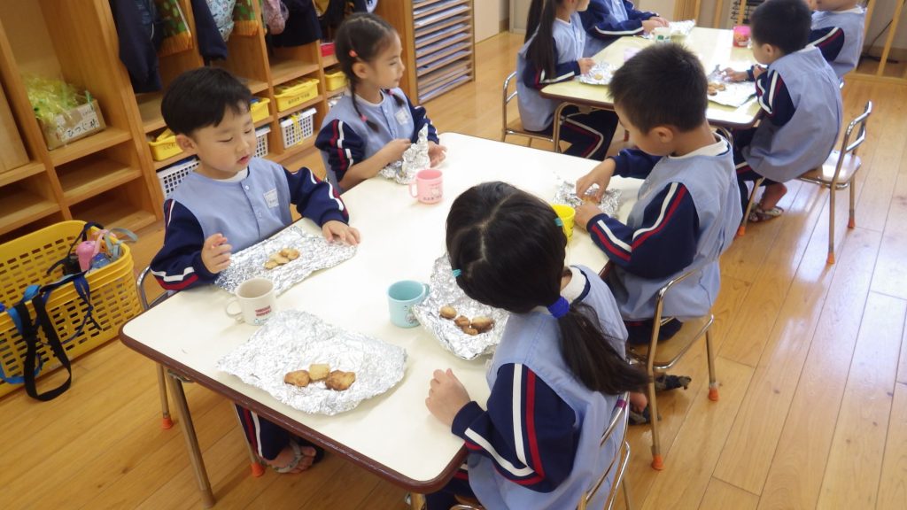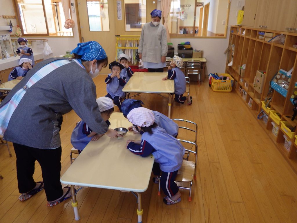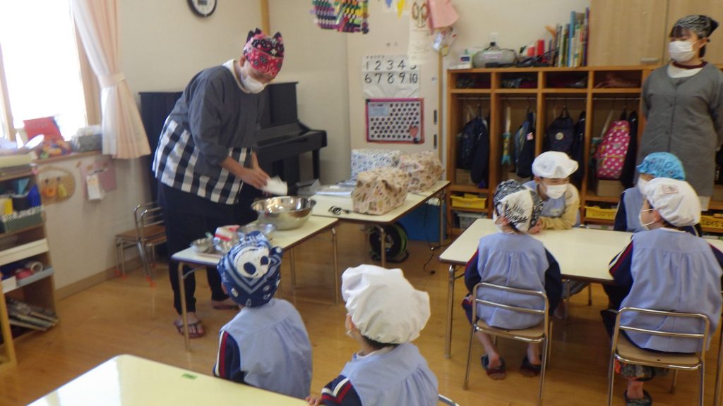 甘麹は誕生会のカップケーキにも入っているので「カップケーキの匂いする!」「塩の味がする」等感じたことをたくさん話していました。