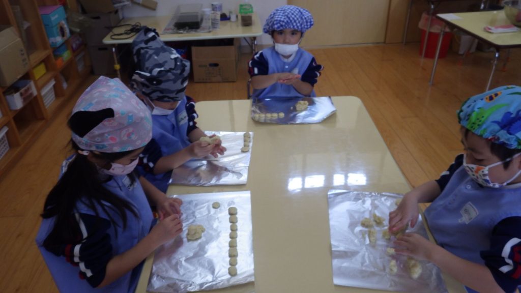 先週、以上児クラスではクッキー作りをしました。