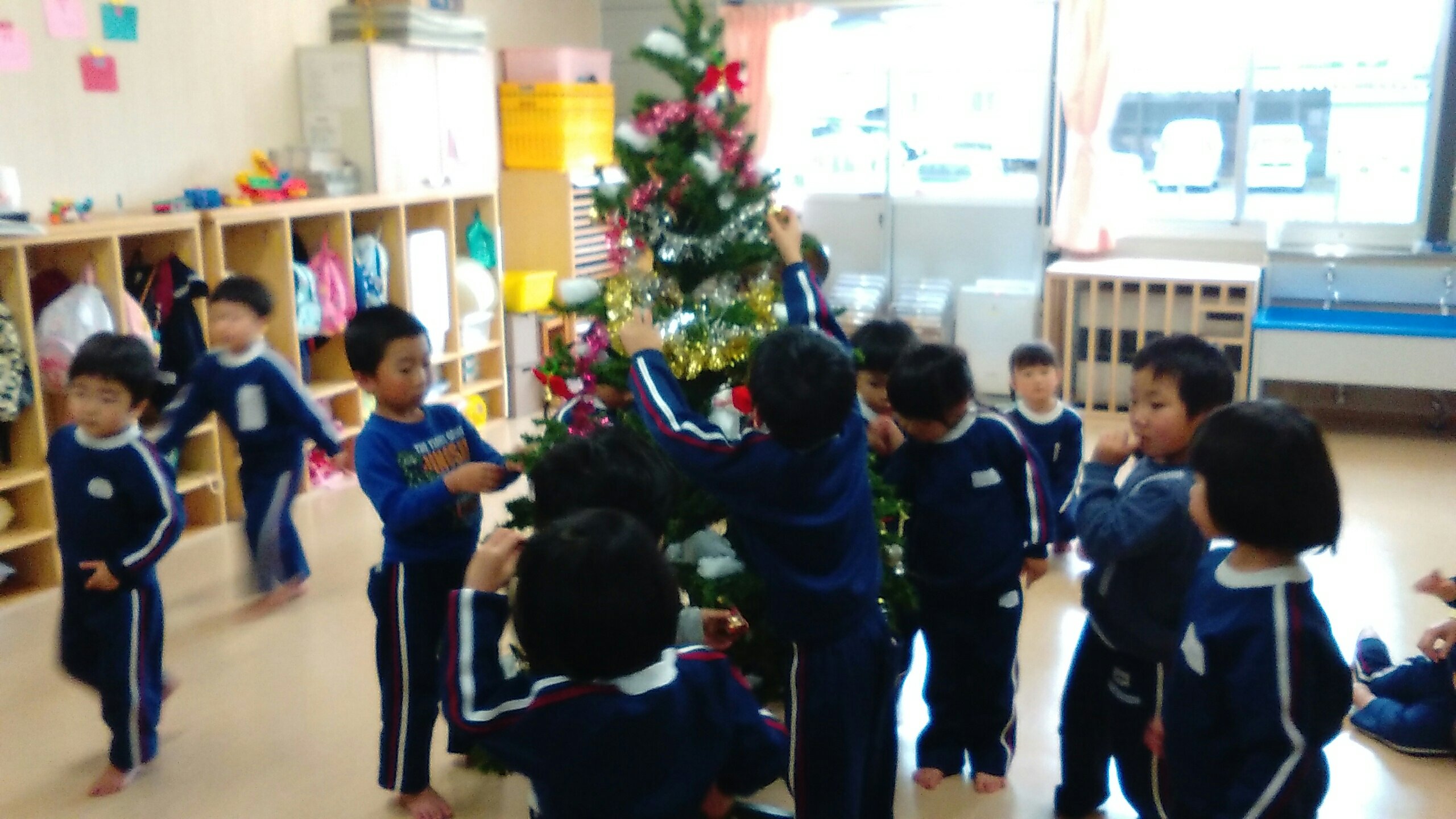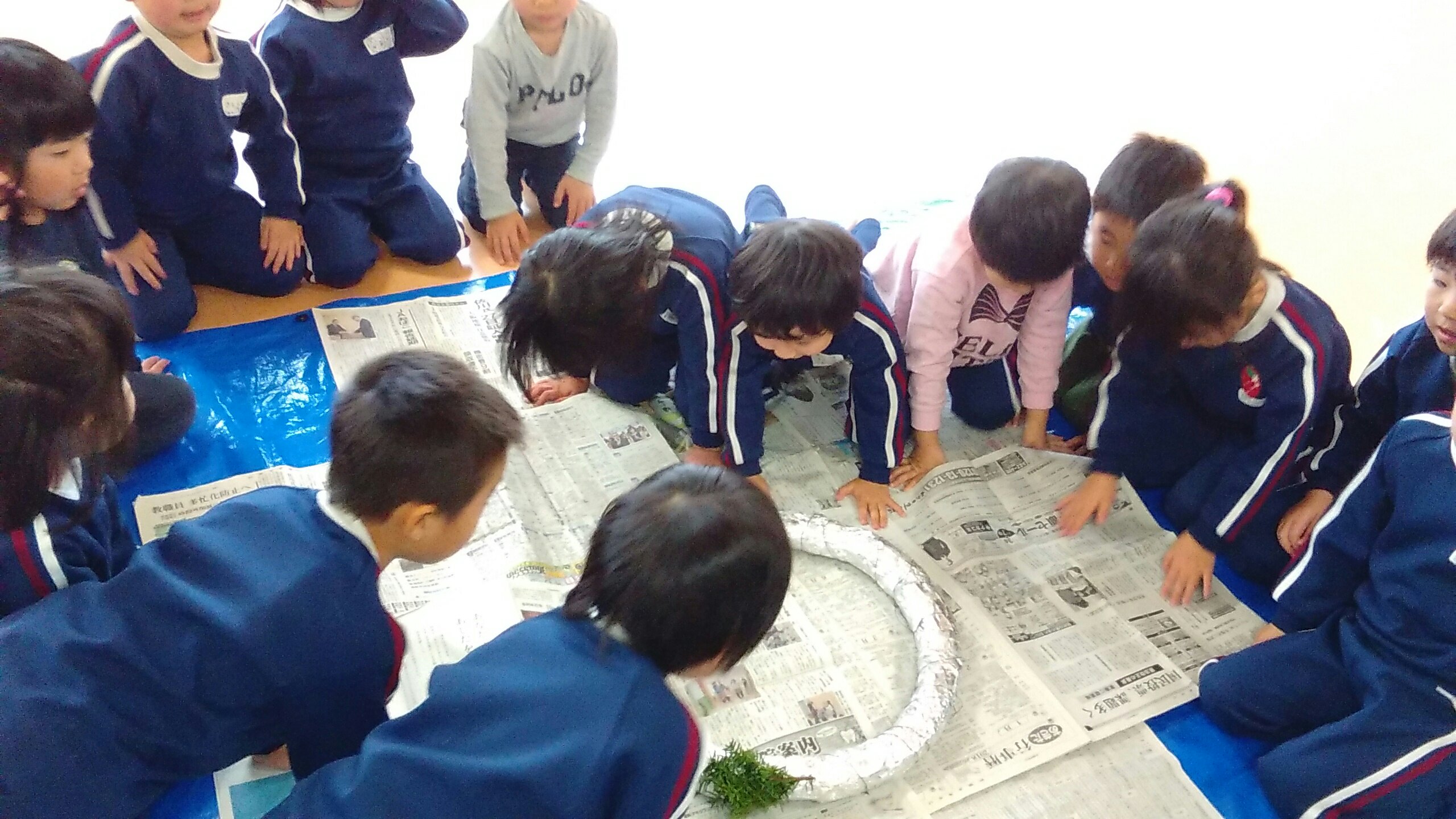 「この飾りはどこに飾ろうかなー♪」「この葉っぱはここがいいかな」と楽しく会話をしながら、仕上げていきます。