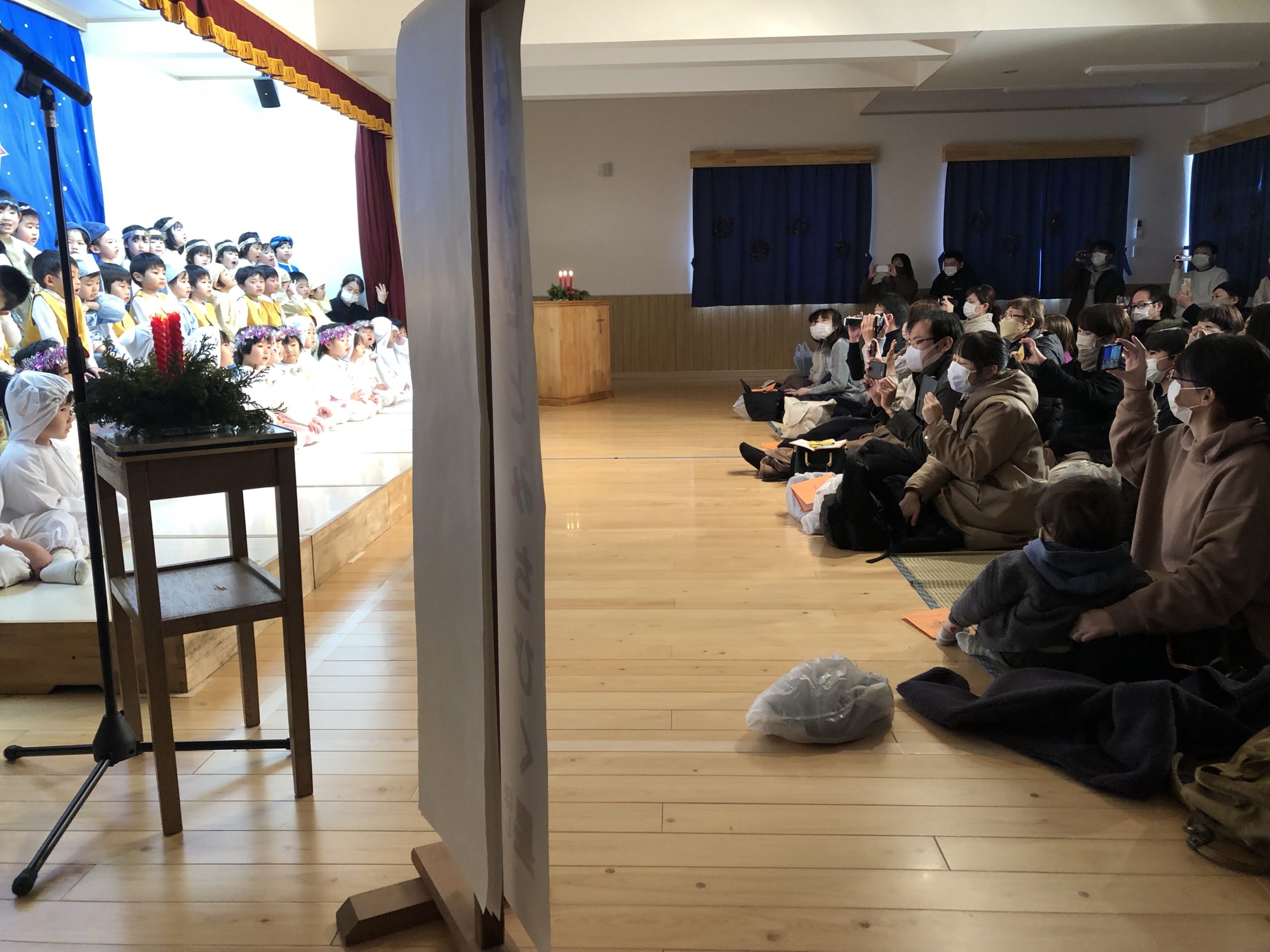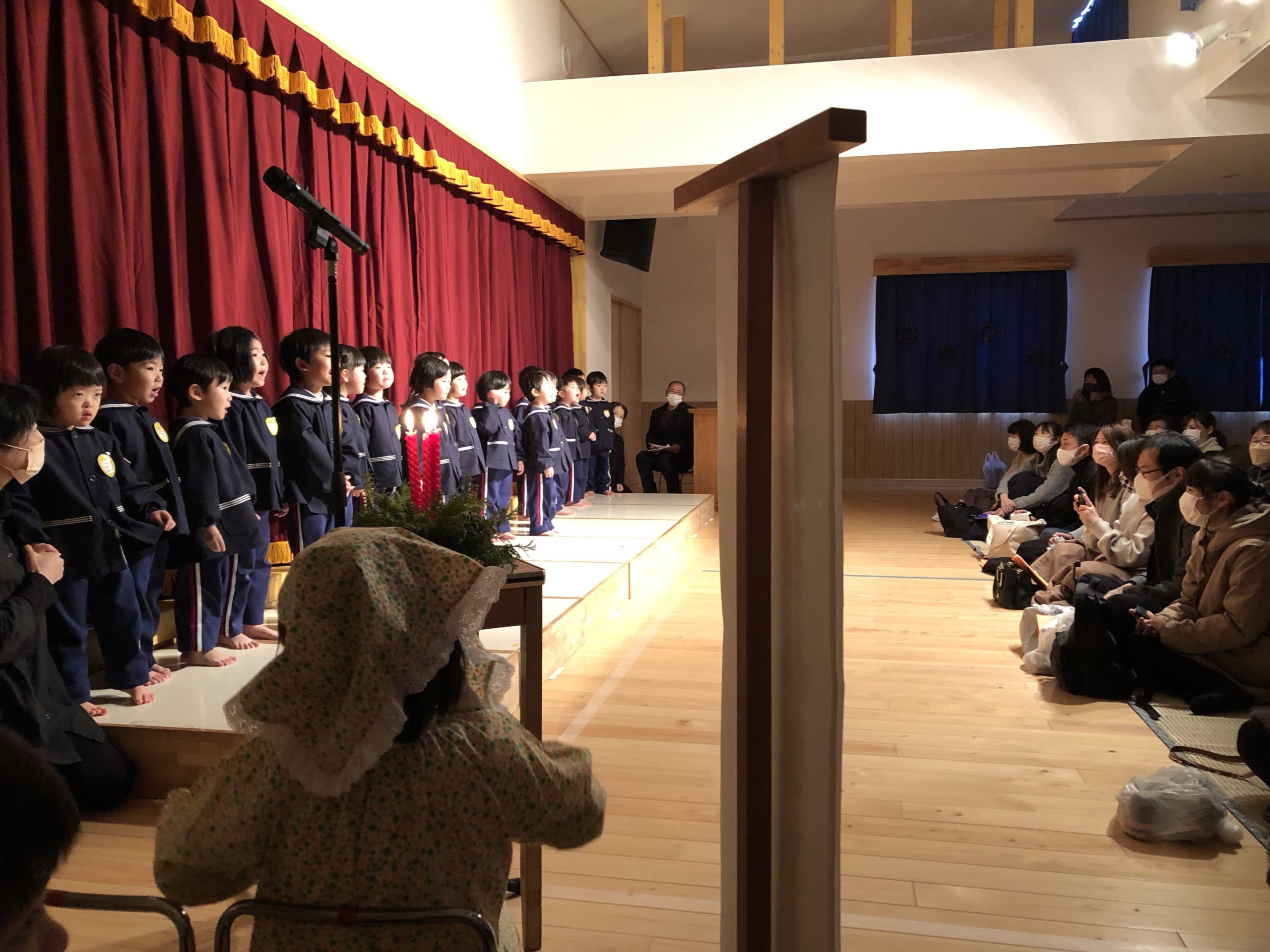 18日の土曜日にクリスマス会祝会が行われました。昨年に続き今年も年長児の保護者のみの参観でした。