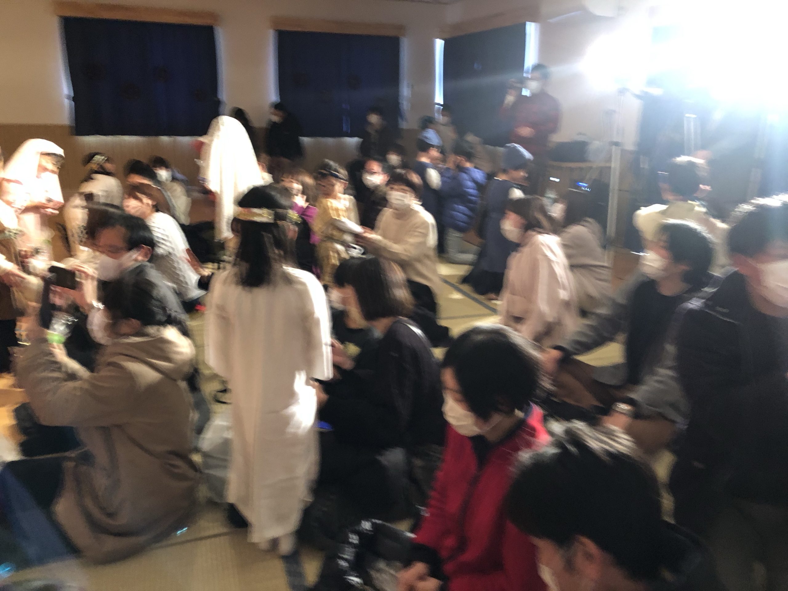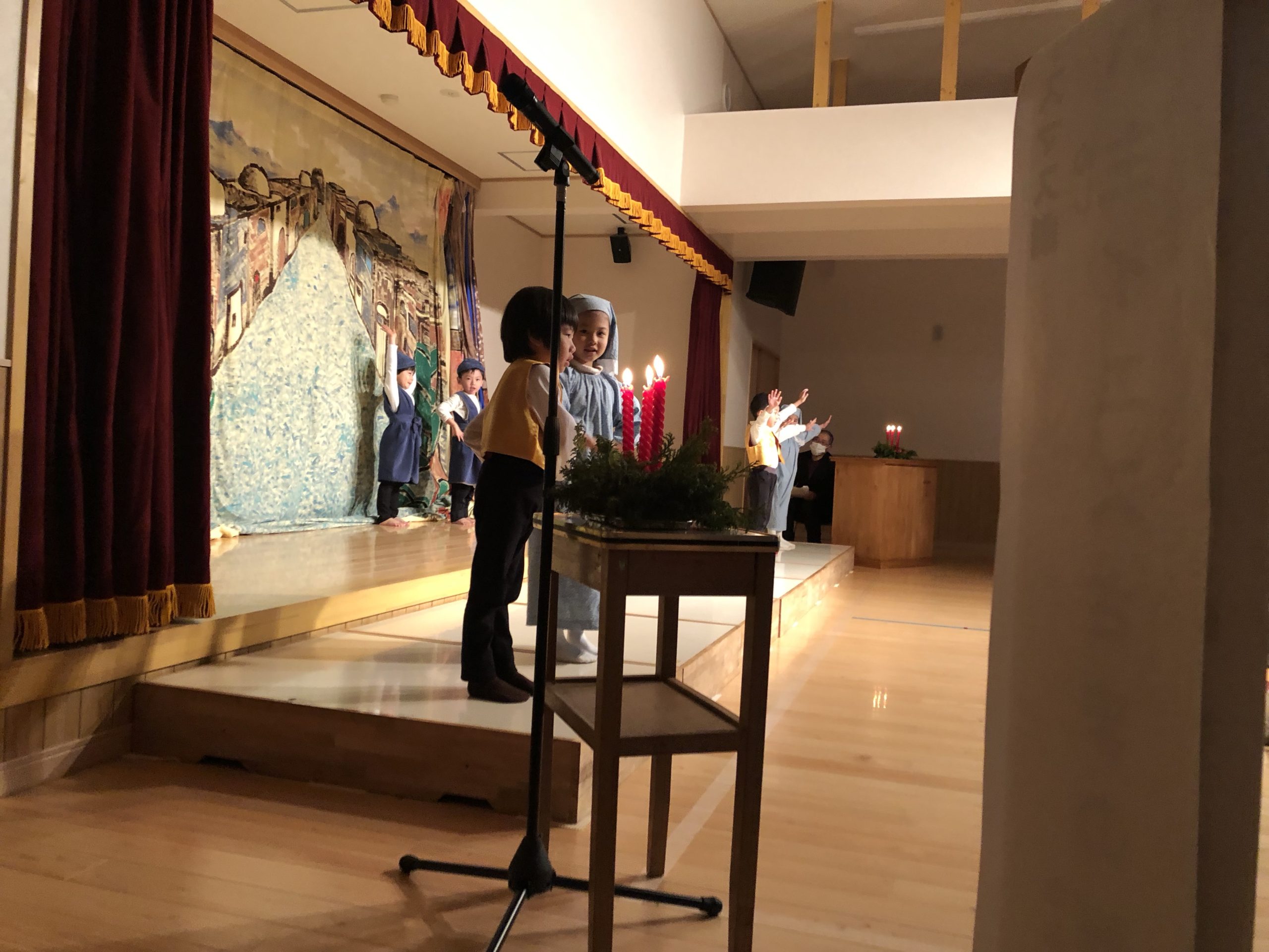 年長児のキャンドルサービスから始まりました。降誕劇では一人ひとりが大きな声で自分の役をしっかりと演じていました。また、劇の初めは年少組の子どもたちの賛美とみことばで幕が開きました。