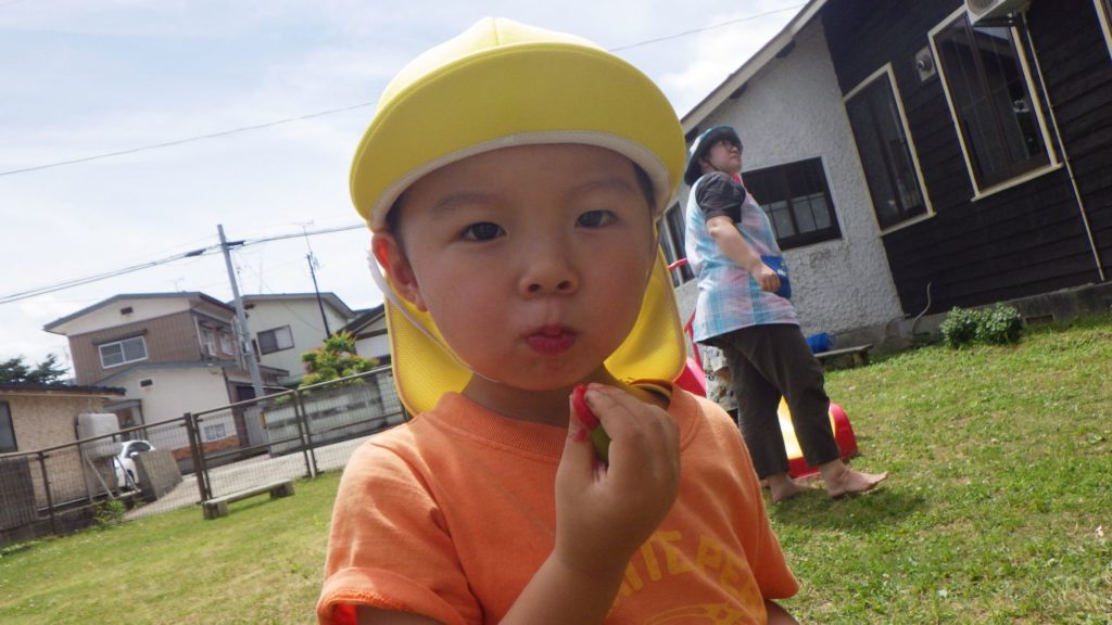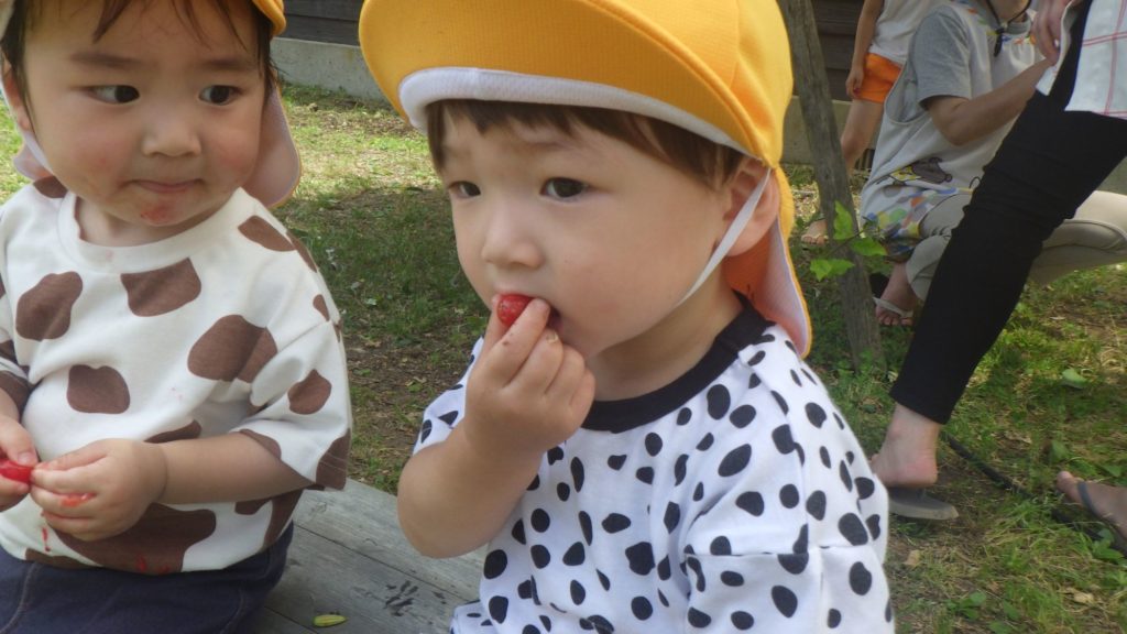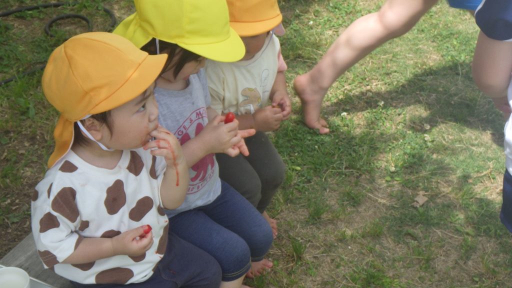 自分たちももちろん食べながらそして、優しく声をかけていました。「たべた?もっとたべる?」縦割りの良さが見える1コマです。