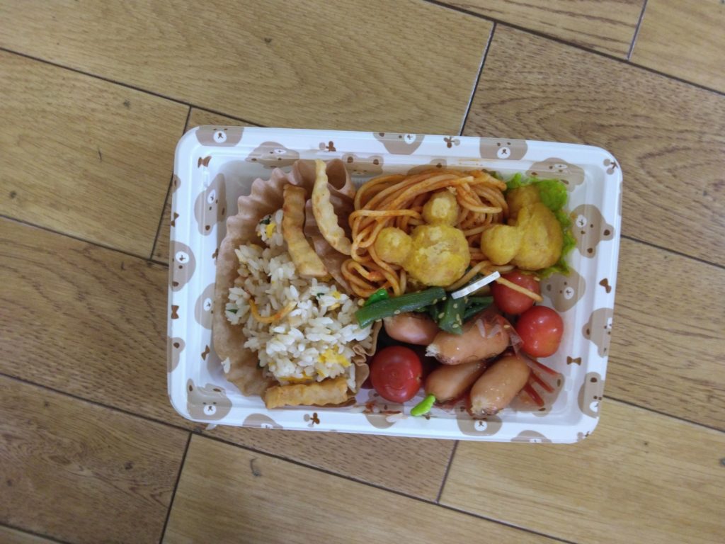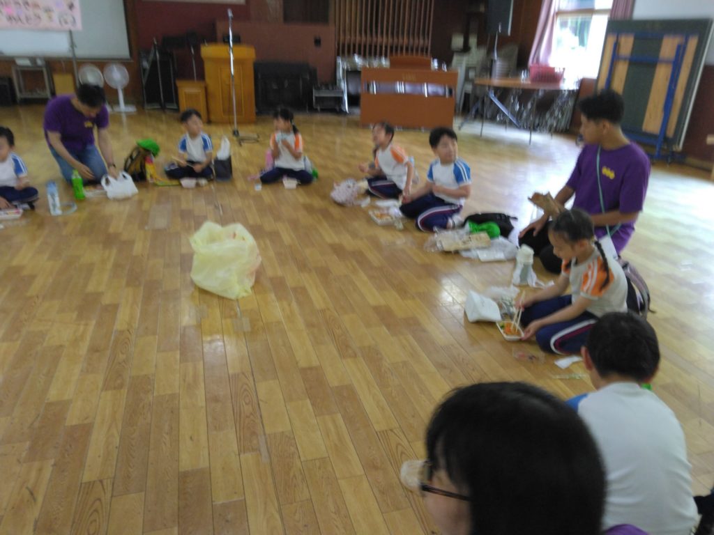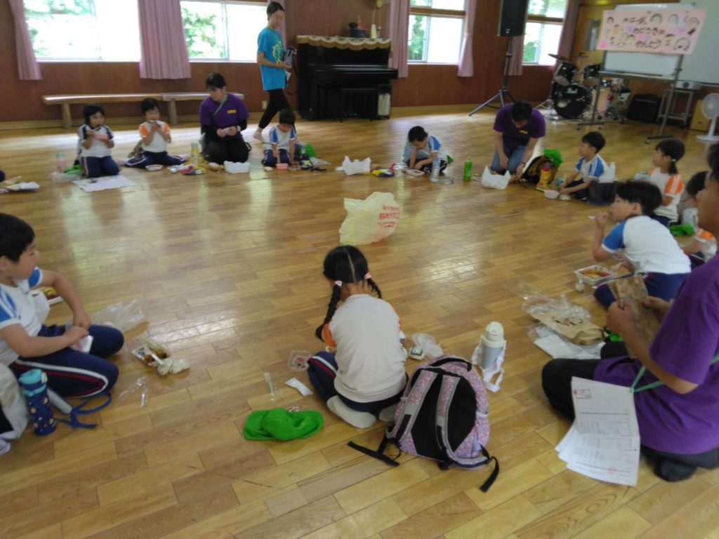 キャンプ場に着いた子どもたちは早速、お昼ご飯御飯を食べてます。