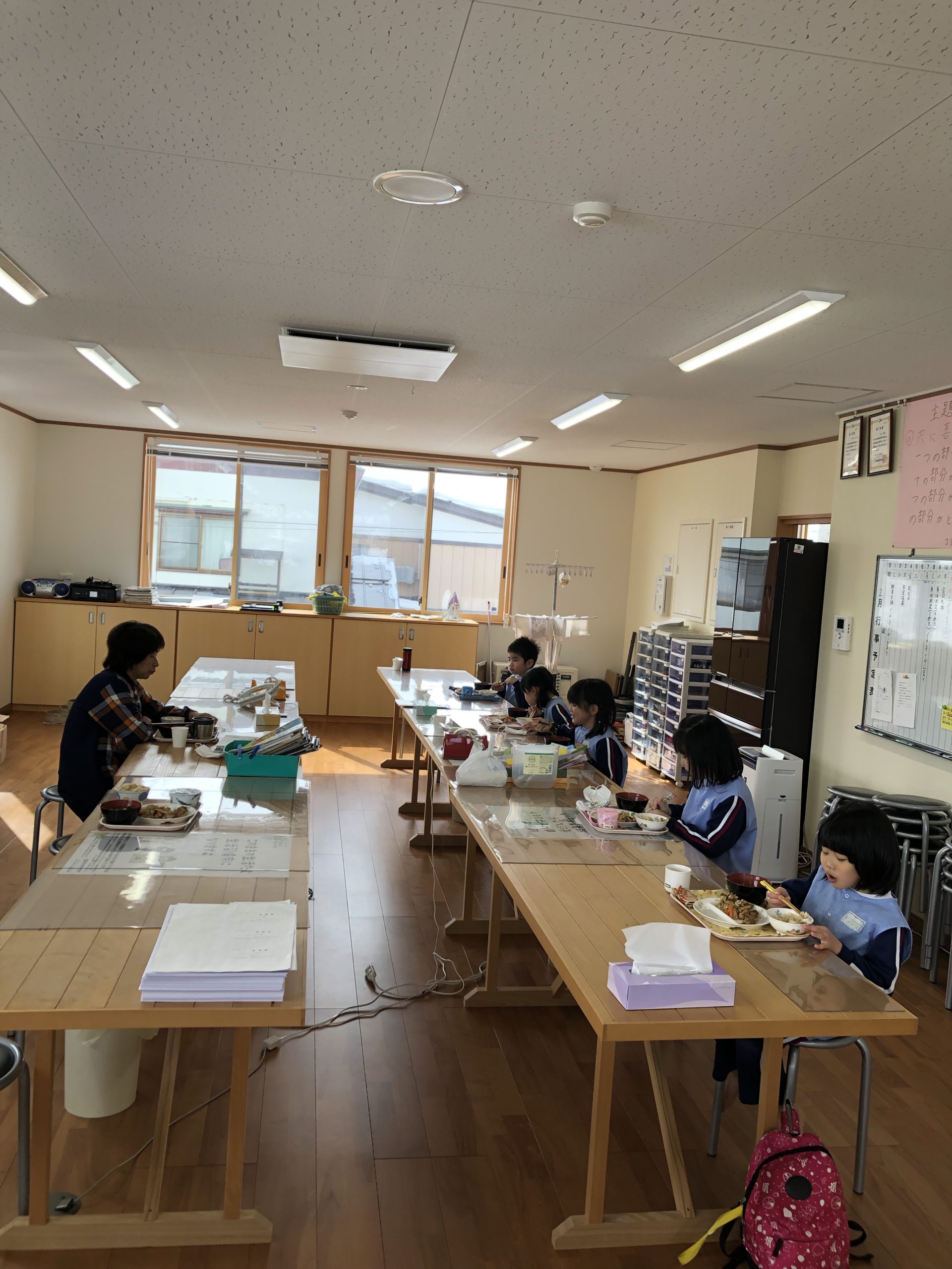 一緒に食べよう!! 2022.02.17 園長先生、一緒に給食食べよう 先日、ゆり組の子どもたちが園長先生に声をかけていました。 そして、再び「ねぇ、園長先生、ゆり組に来て一緒に食べよう」 すると園長先生から「あら嬉しい!!私が招待するから職員室に来て食べよう」と、誘われた子どもたち。 早速、5人の子どもたちは自分の給食をお盆にのせて2階の職員室に来て園長先生と食べました!! 明日は「わたしがいく!!」「ぼくも!」 しばらく賑やかな職員室での給食時間になりそうです。