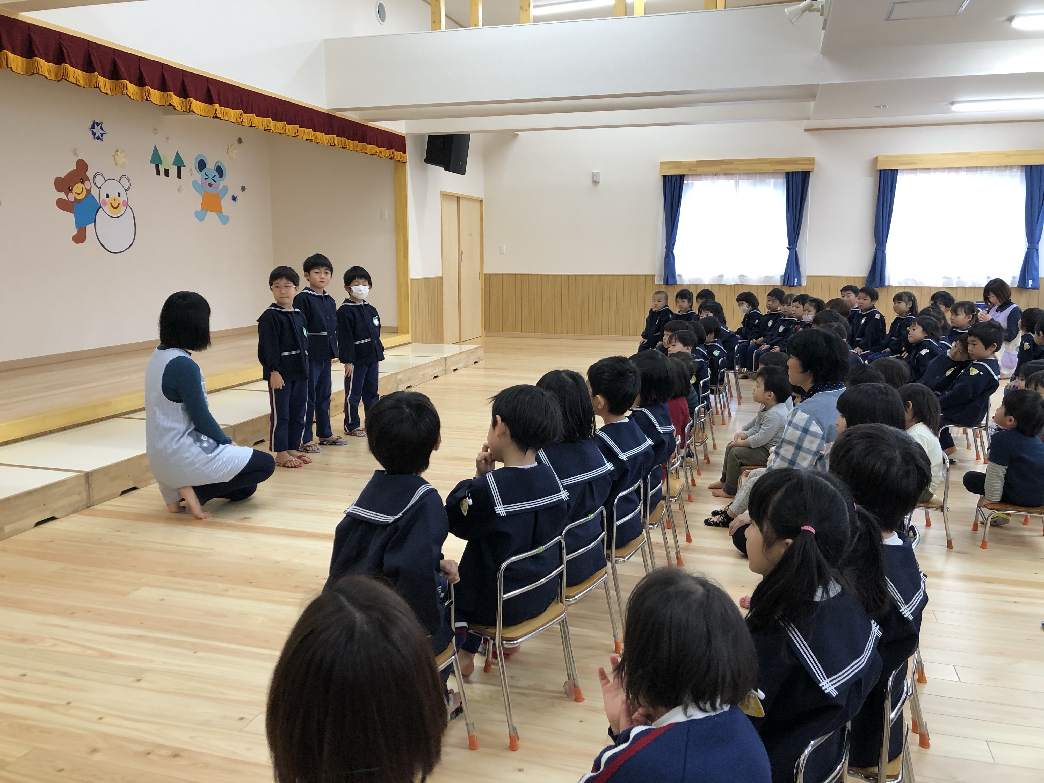 式の中で年長組から代表で三人の子どもがどんな冬休みだったかを発表してくれました。