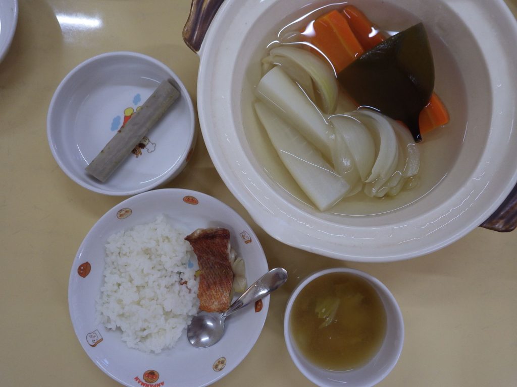 ごはん(もも組、すずらん組白米、ひまわり組五分づき)