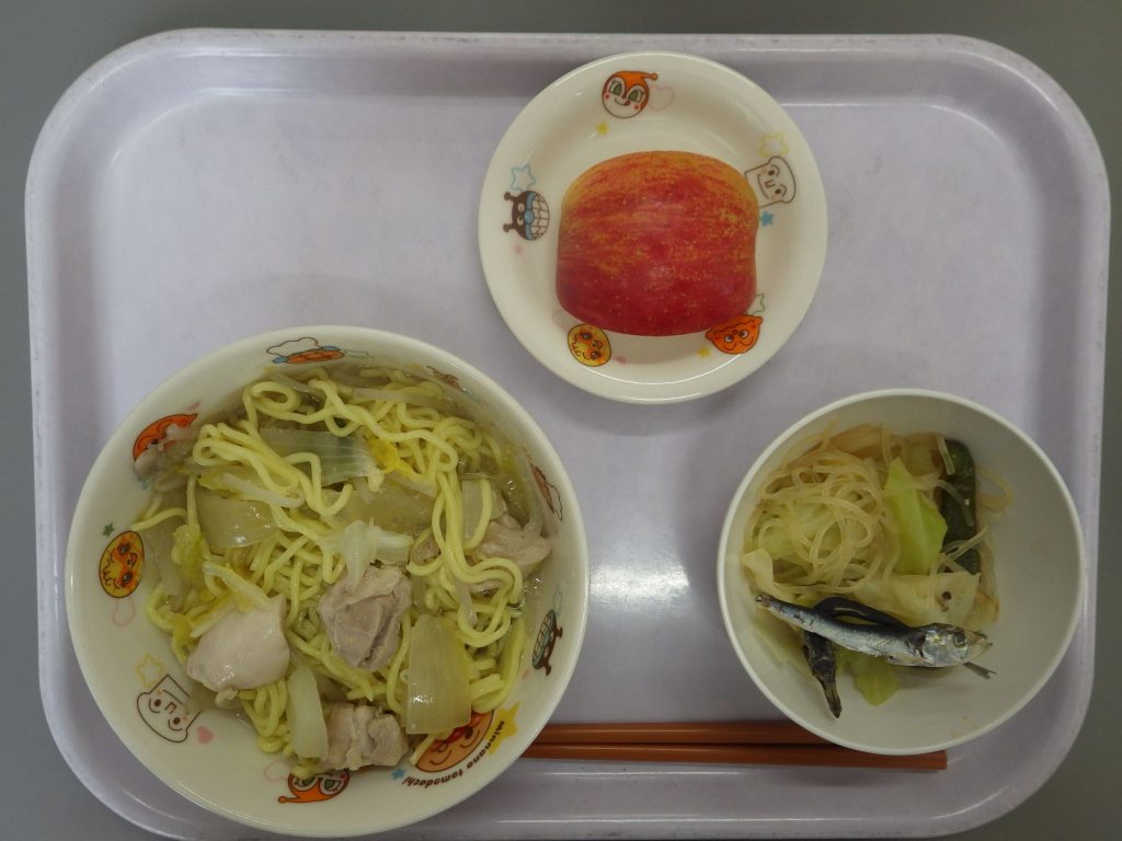 今日の給食 2024.12.27 今日の給食は 塩鶏中華そば(鶏肉、白菜、玉ねぎ、もやし) もも組、すずらん組米粉麺、ひまわり組、以上児クラス中華麺 春雨炒め(春雨、ピーマン、しめじ、キャベツ) りんご ひまわり組、以上児クラスは煮干しも食べます。 午前は各クラス甘酒を飲みました。 離乳食は 塩鶏中華そば(米粉麺、白菜、玉ねぎ、もやし) 土鍋野菜(キャベツ、ピーマン、さつまいも) 煮りんご 咀嚼用ごぼう