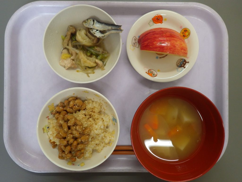 今日の給食 2025.01.22 今日の給食は ごはん(もも組、すずらん組白米、ひまわり組五分づき、以上児クラス玄米) ごはんにはすり胡麻をかけます。 味噌汁(里いも、えのき、人参) 塩麹納豆 中華あんかけ(鶏肉、白菜、切り干し大根、もやし、しめじ) りんご(もも組、すずらん組は煮りんご) ひまわり組、以上児クラスは煮干しも食べます。