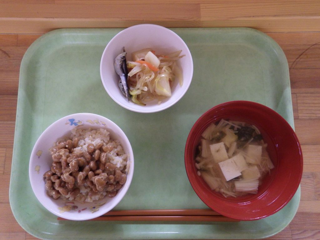今日の給食 2025.04.03 今日の給食は ごはん(もも組、すずらん組白米、ひまわり組五分づき、以上児クラス玄米) 味噌汁(豆腐、えのき、わかめ) 味噌納豆 春雨炒め(春雨、キャベツ、人参、玉ねぎ、もやし) ひまわり組、以上児クラスは煮干しも食べます。 離乳食は 白米おかゆ スープ(豆腐、えのき) ひきわり納豆 土鍋野菜(キャベツ、玉ねぎ、じゃがいも)