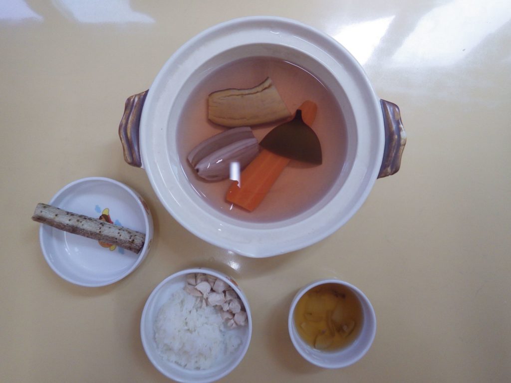 今日の給食 2025.06.16 今日の給食は パン(すずらん組米粉パン、ひまわり組、以上児クラス全粒粉パン) 玉ねぎ糀スープ(さつまいも、ブロッコリー、玉ねぎ) サラダ(鶏肉、キャベツ、蓮根、しめじ) 離乳食は 白米ごはん スープ(玉ねぎ、しめじ) 鶏ささみ 土鍋野菜(さつまいも、蓮根、人参) 咀嚼用ごぼう 午前のおやつに豆乳を飲みました