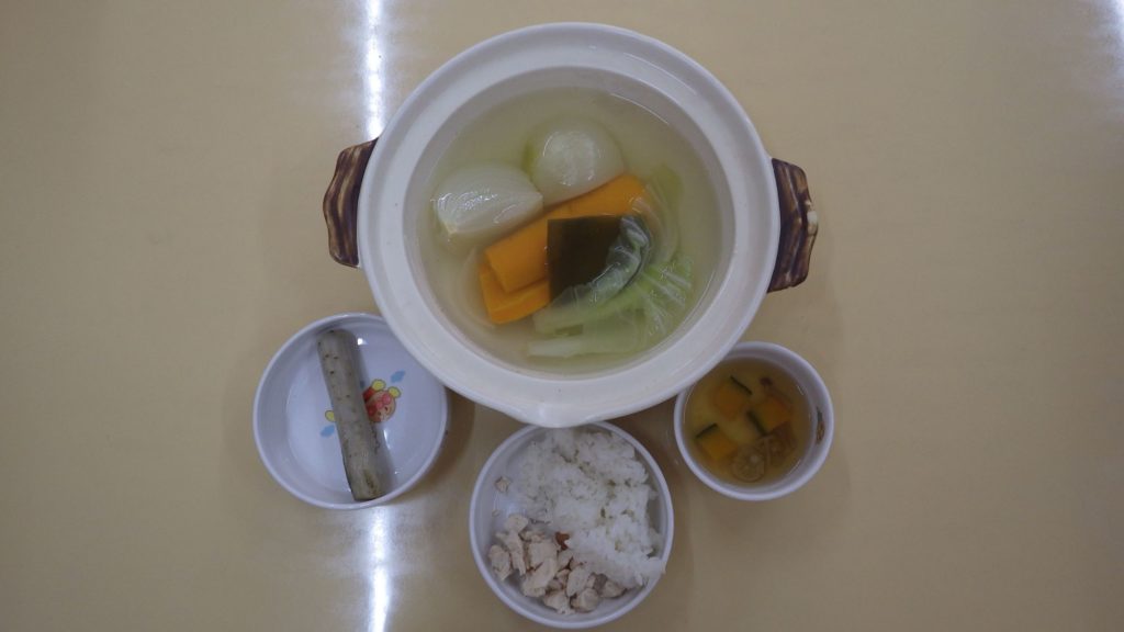 スープ(鶏肉、トマト、玉ねぎ、キャベツ、しめじ)