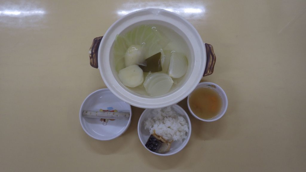 今日の給食 2025.10.01 今日の給食は ごはん(すずらん組白米、ひまわり組五分づき、以上児クラス玄米) 味噌汁(じゃがいも、キャベツ、玉ねぎ) さば塩焼き ひじき煮(ひじき、大豆、椎茸、人参、油揚げ) 以上児クラスはきゅうりのぬか漬けも食べました。 ひまわり組、以上児クラスは煮干しも食べます。 今日の離乳食は 白米ごはん 味噌汁(人参、椎茸) さば塩焼き 土鍋野菜(じゃがいも、玉ねぎ、キャベツ) 咀嚼用ごぼう