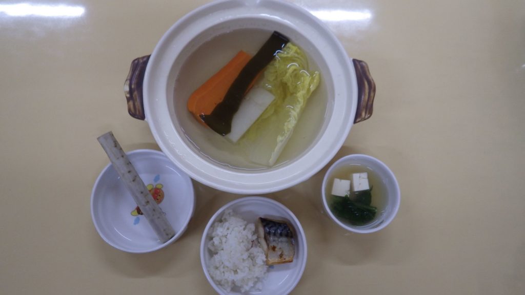 今日の給食 2025.10.21 今日の給食は ごはん(もも組、すずらん組白米、ひまわり組五分づき、以上児クラス玄米) 鯖塩焼き おかか和え(白菜、小松菜、人参、えのき、油揚げ) デザート(りんご) もも組、すずらん組は煮りんご 以上児クラスはきゅうりのぬか漬け ひまわり組、以上児クラスは煮干しも食べます。 離乳食 白米ごはん 味噌汁(豆腐、小松菜) 鯖塩焼き 土鍋野菜(大根、人参、白菜) 咀嚼用ごぼう