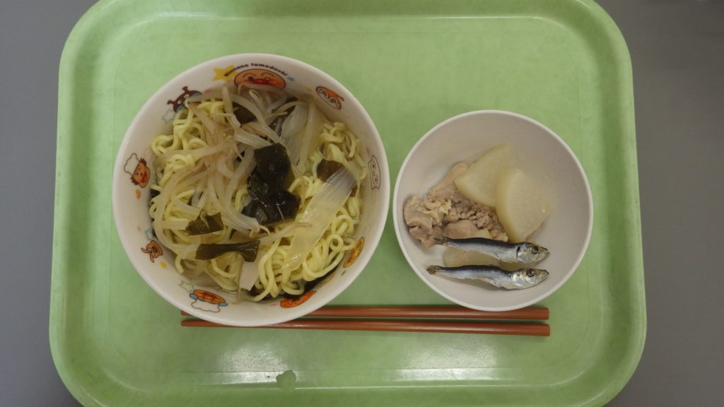 ひまわり組、以上児は中華麺、
