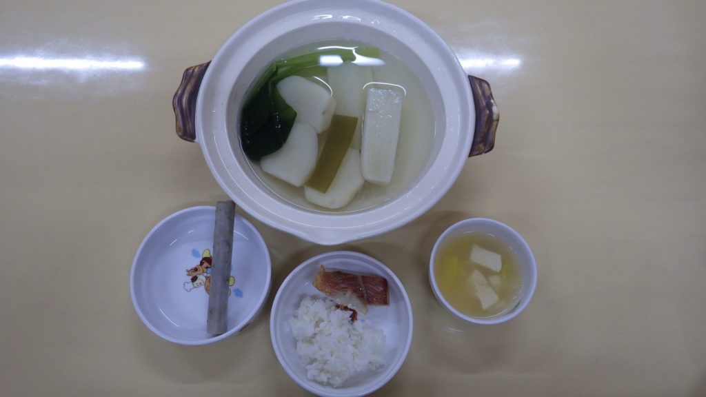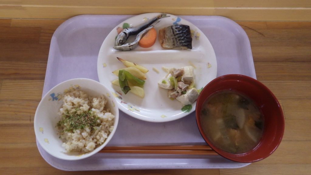 今日の給食 2026.02.12 今日の給食は ごはん(もも組、すずらん組白米、ひまわり組五分づき、以上児クラス玄米) 大根と小松菜の味噌汁 鯖塩焼き じゃがいもとピーマンの炒め物 白菜とえのきの肉豆腐 ひまわり組、以上児は煮干し 以上児クラスは人参の糠漬け 午後のおやつは鰹節おにぎりか 今日の離乳食は 白米ごはん なめことえのきの味噌汁 赤魚塩焼き 土鍋野菜(大根、人参、キャベツ) 咀嚼用ごぼう 午後のおやつは白米おにぎり