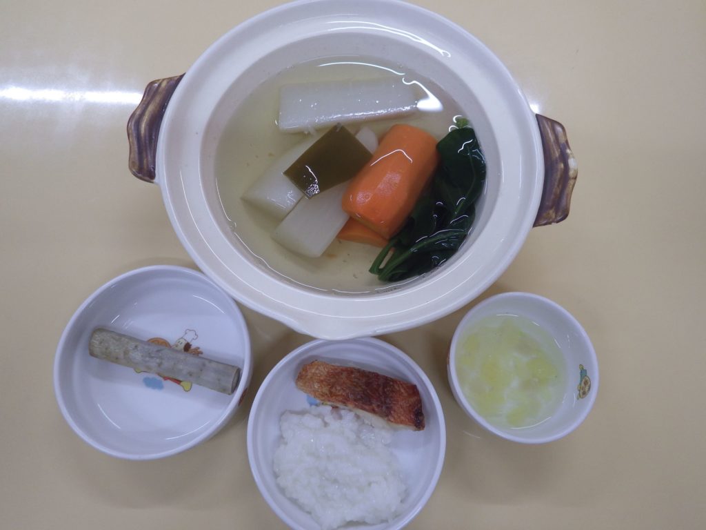 今日の給食 2026.02.20 今日の給食は あんかけうどん(もも組、すずらん組米粉麺、ひまわり組、以上児クラス小麦粉麺) 大根と鶏肉の煮物 ほうれん草と人参の白和え ひまわり組、以上児クラスは煮干し 以上児クラスは人参の糠漬け 午後のおやつは鰹節おにぎり 今日の離乳食は 白米ごはん・粥 玉ねぎと白菜のスープ 赤魚 土鍋野菜(大根、人参、さつまいも) 咀嚼用ごぼう 午後のおやつは白米おにぎり