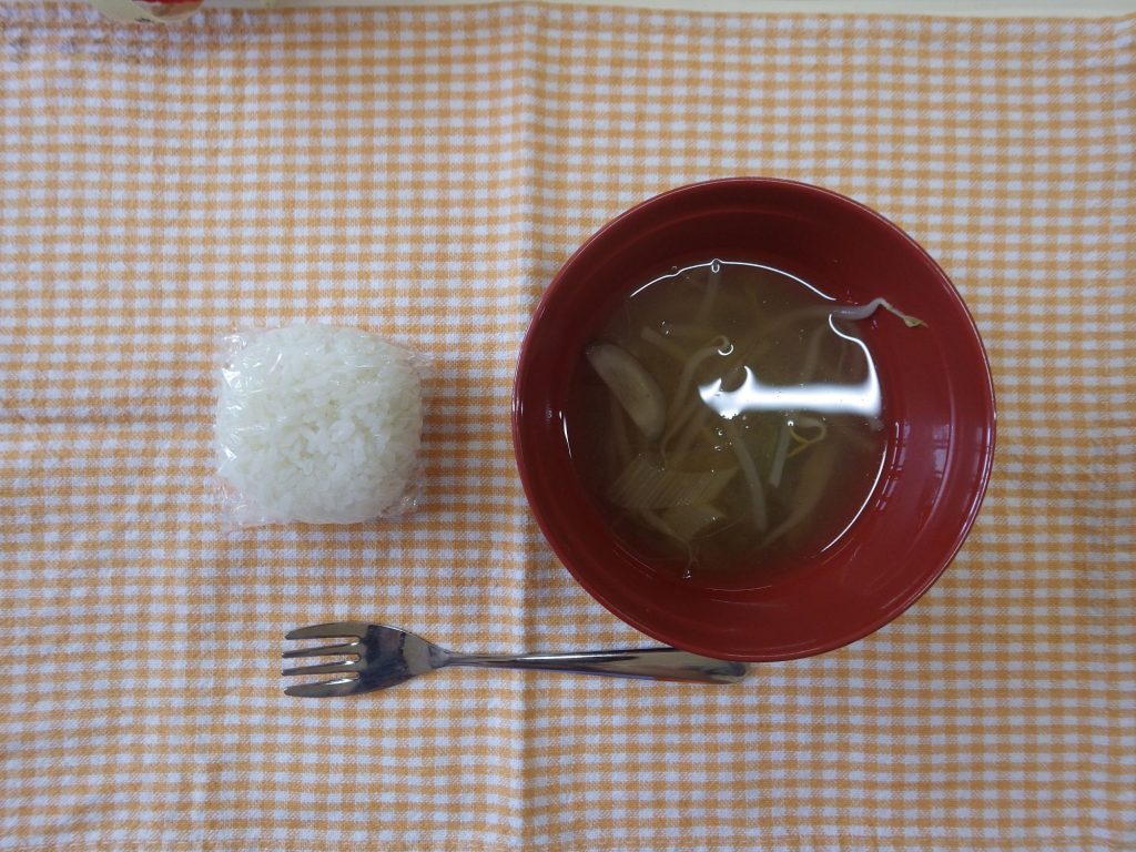 家庭で作っていただいた塩だけの白いおにぎりを子どもたちと味わって食べました。