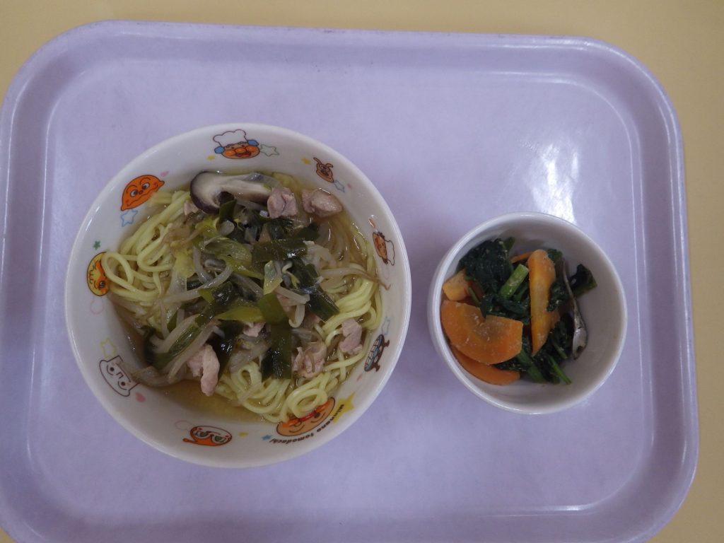 ひまわり組は五目中華麺(鶏肉、ニラ、しいたけもやし、ねぎ)