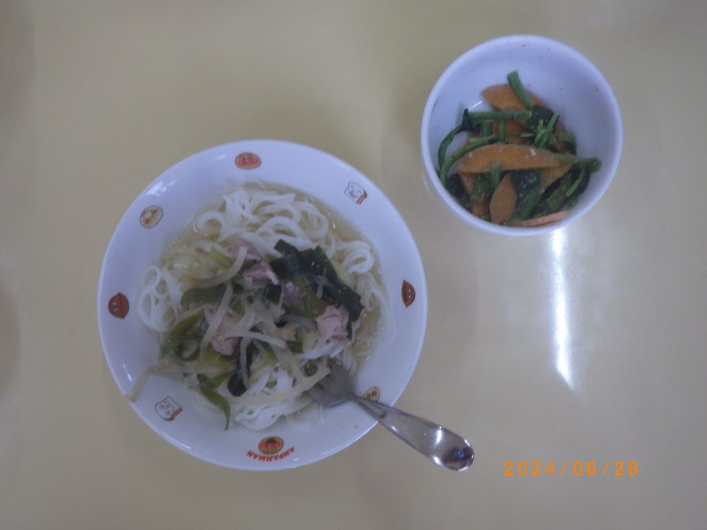 もも組、すずらん組は米粉麺(鶏肉、ニラ、しいたけ、もやし、ねぎ)