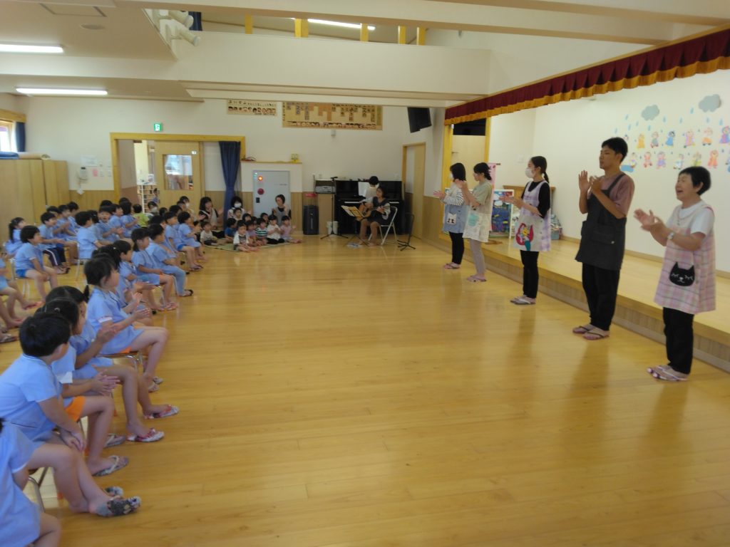 先生たちはピアノとギターの伴奏に合わせて賛美をしました!!