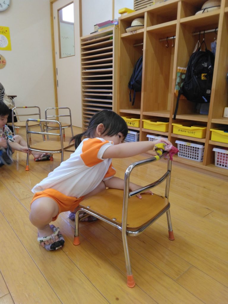 が普段使っているお道具箱や椅子、棚などを綺麗に掃除をしました。