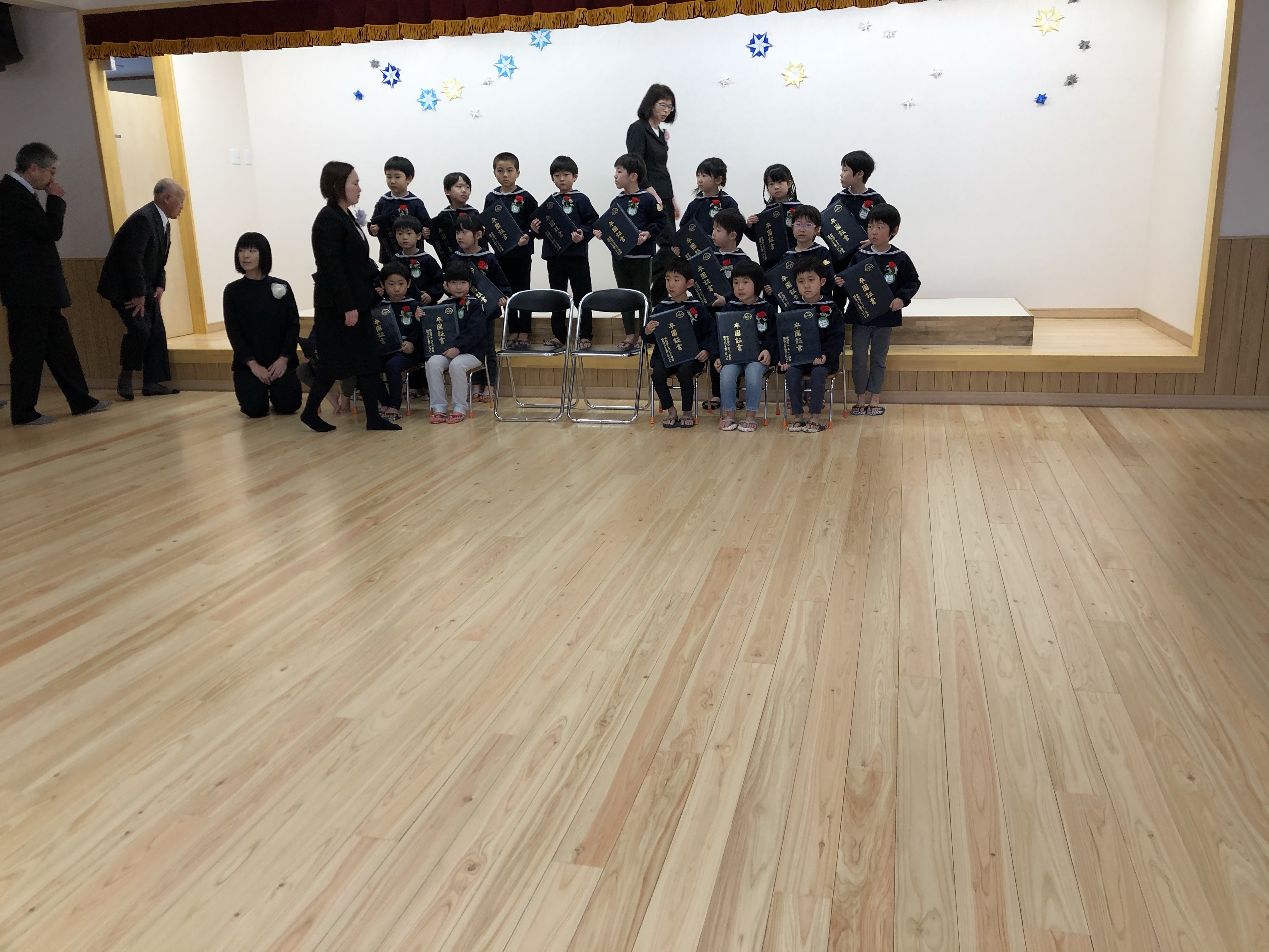 卒園、修了記念写真撮り 2020.01.23 今日は、遊戯室で卒園、修了の記念写真を撮りました。 ゆり組さんは胸に赤いバラをつけ卒園証書ホルダーを持って、ちょっぴり緊張していました。 赤いバラは先生たちの手作りです。伝統と言ってもいいほど長く続いています。