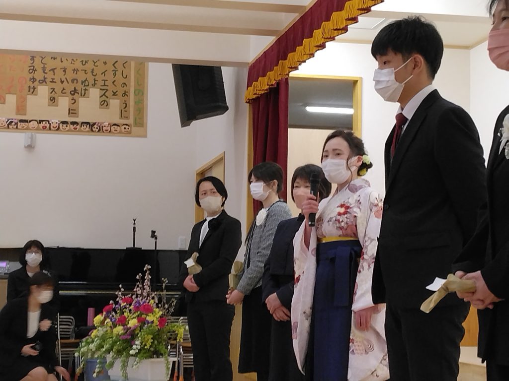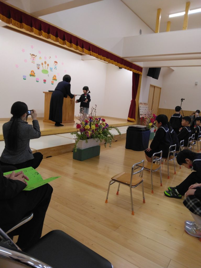 卒園式 2023.03.19 2022年度の卒園式がおわりました。 担任が名前を呼ぶと大きな声で返事をして園長先生から卒園証書をもらいます。 一人一人胸を張って立派な姿でした。 退場する子どもたちの姿が愛おしく…。 これからの道も神さまと共に歩けますように。