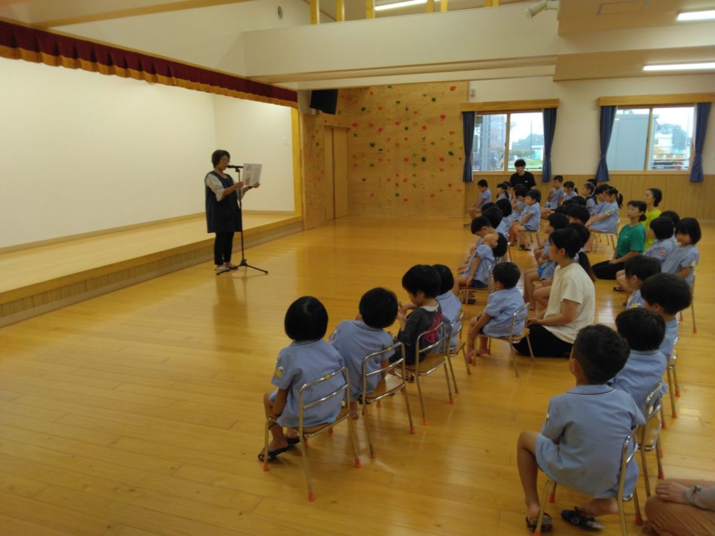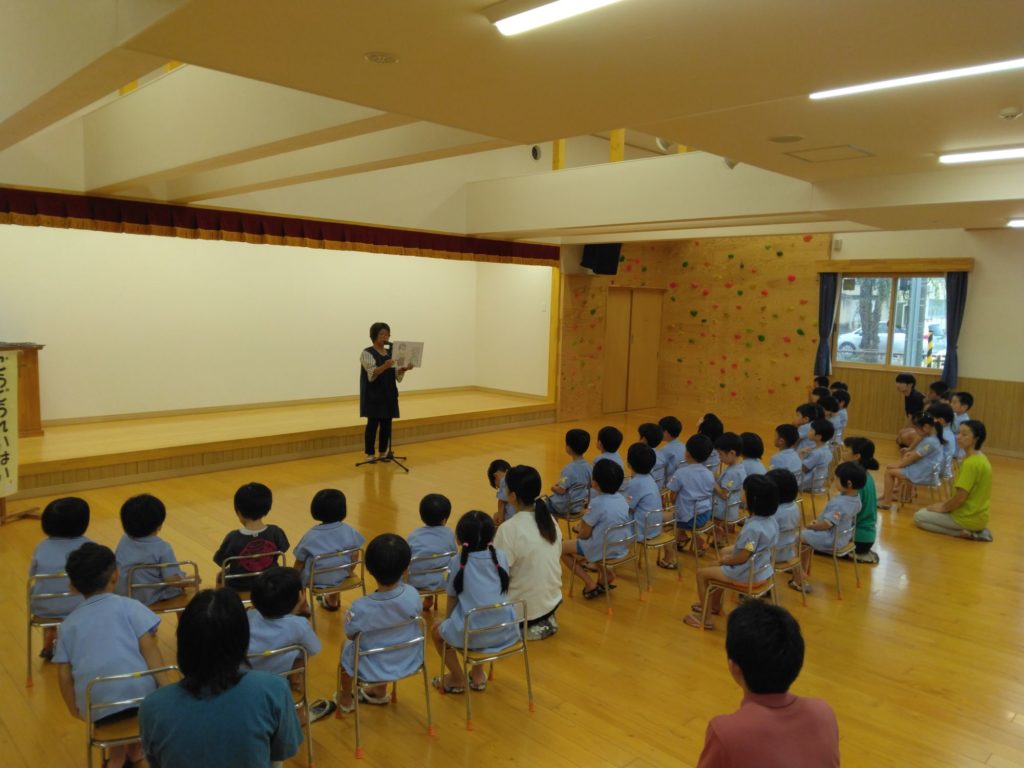 合同礼拝(以上児クラス) 2025.09.05 週末の金曜日は基本、合同礼拝が行われています。 今日は、雨の為に隣のチャペルで合同礼拝を、行うことが出来ませんでした。 雨の日は遊戯室で行われます。 今日のお話しは園長先生がしてくださいました。 旧約聖書第2列王記の中から預言者のエリシャさんのお話しでした。 静かにお話しを聞く子どもたちは最後にお話しの質問にもしっかりと応えていました。その姿を見ていて礼拝で〝聞く〟と言う姿勢が出来ていることを嬉しく思いました。