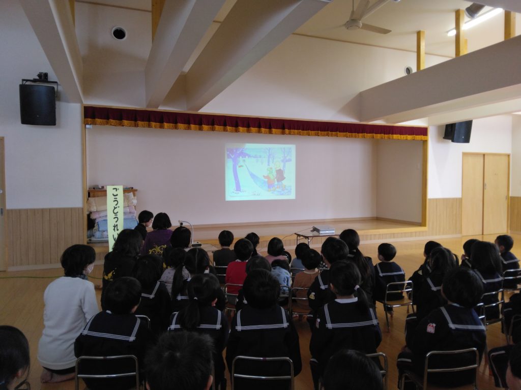 「ふしぎな鐘」というお話で、子どもたちは食い入るように見ながら聞いていました。