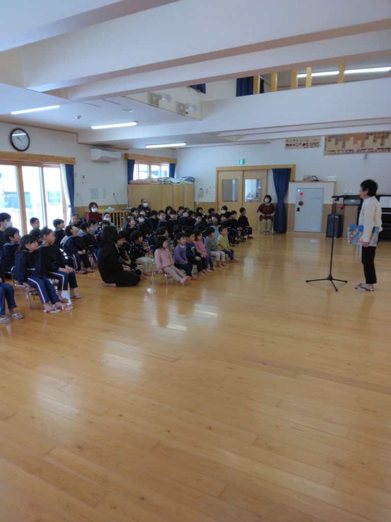 合同礼拝 2023.12.01 今日はアドベント2週目。クランツには2本のろうそくに火が灯り、登園してきた子どもたちは嬉しそうに眺めていました。 合同礼拝では羊飼いさんたちのお話を聞きました。イエスさまがお生まれになったことを1番最初に知らせてもらったのが羊飼いさんです。神さまは私たちのために救い主イエスさまを与えてくださったことをお話から聞きました。