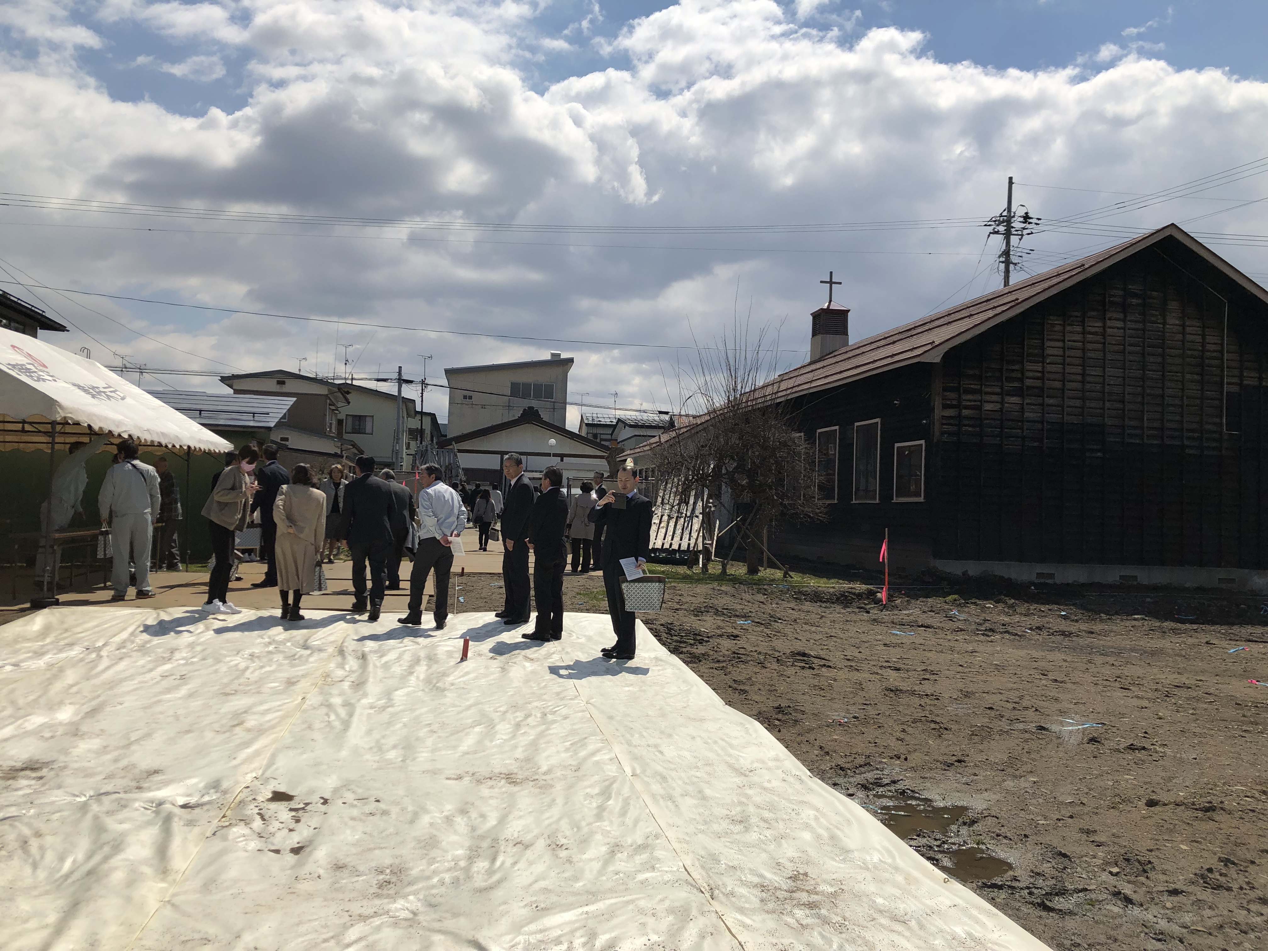 起工式が終わり目線を上げると目に入ったのは空高く建つ十字架‥