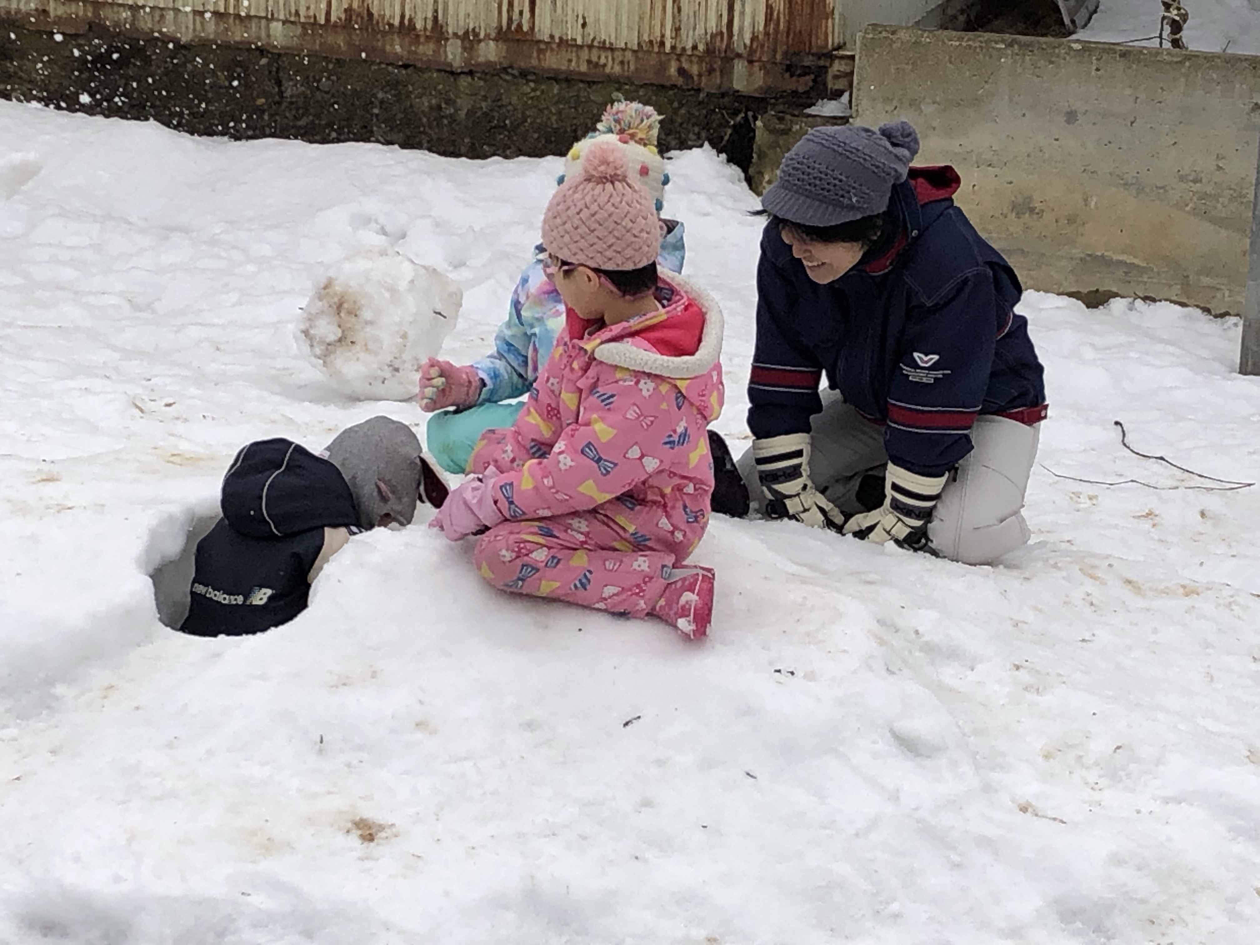 土曜預かり 2020.01.27 土曜日の預かりは異年齢保育です 以上児クラスは外に出て雪遊びをしました。雪遊びと言ってもいつもの年と全く違い、雪の積もっている場所を選んで遊びました! 未満児クラスは小ホールでしっぽ取りをして楽しみました。