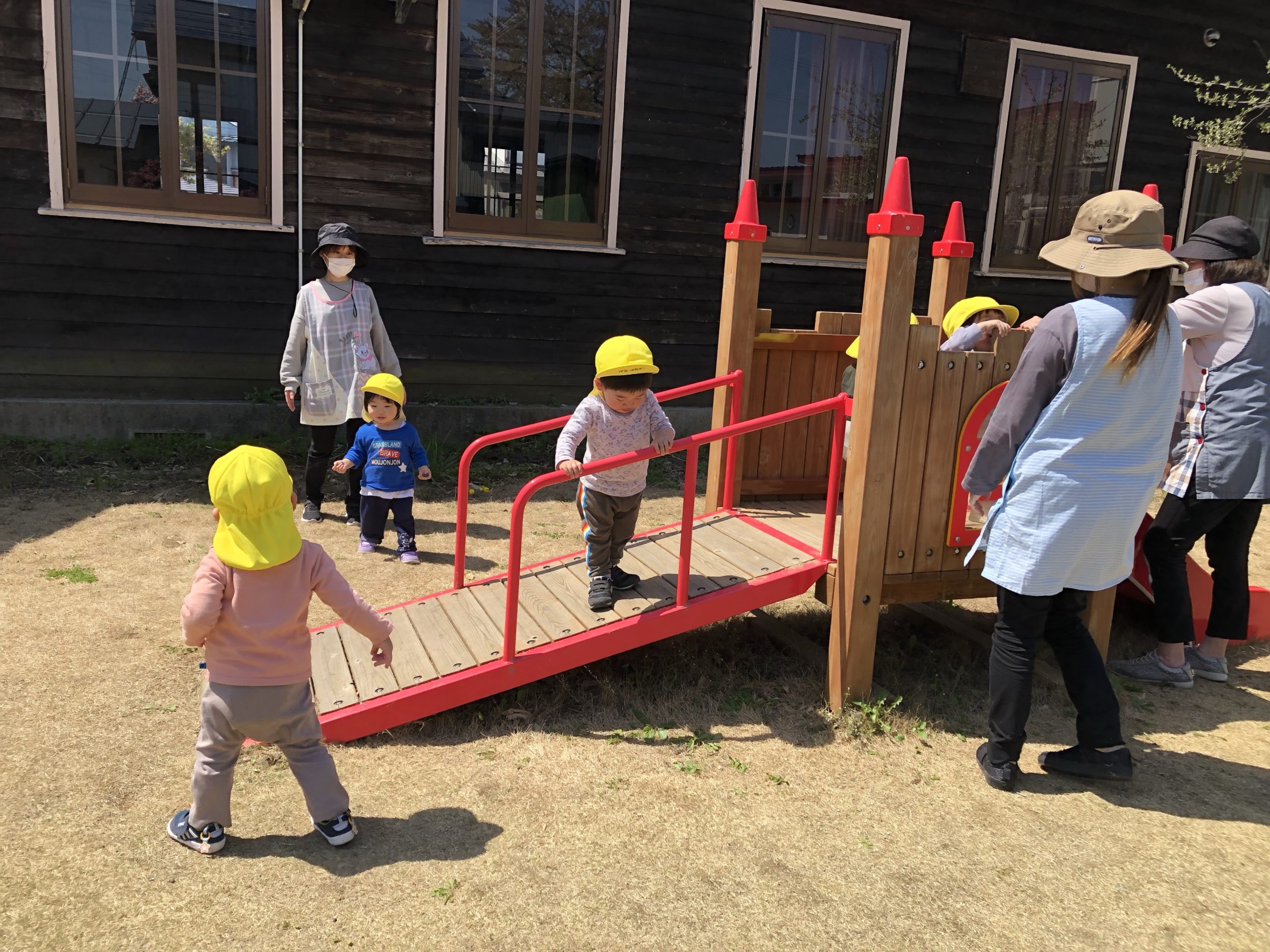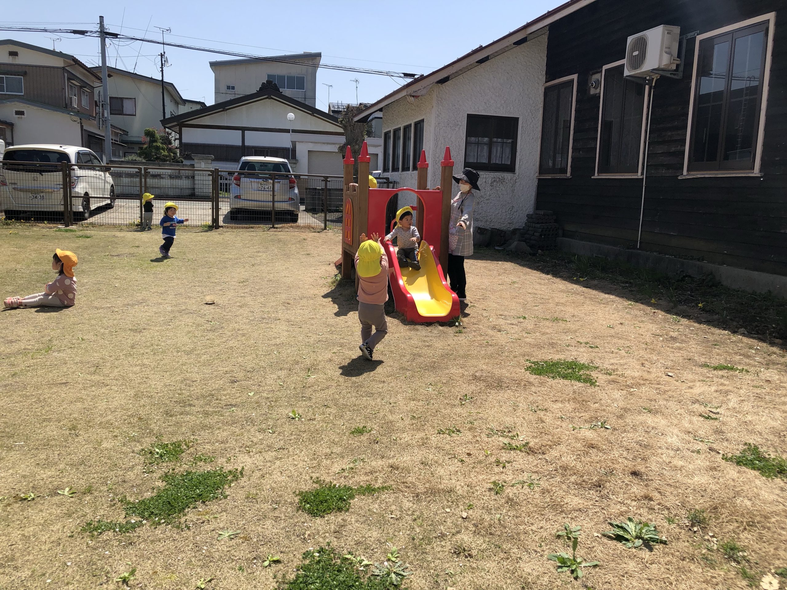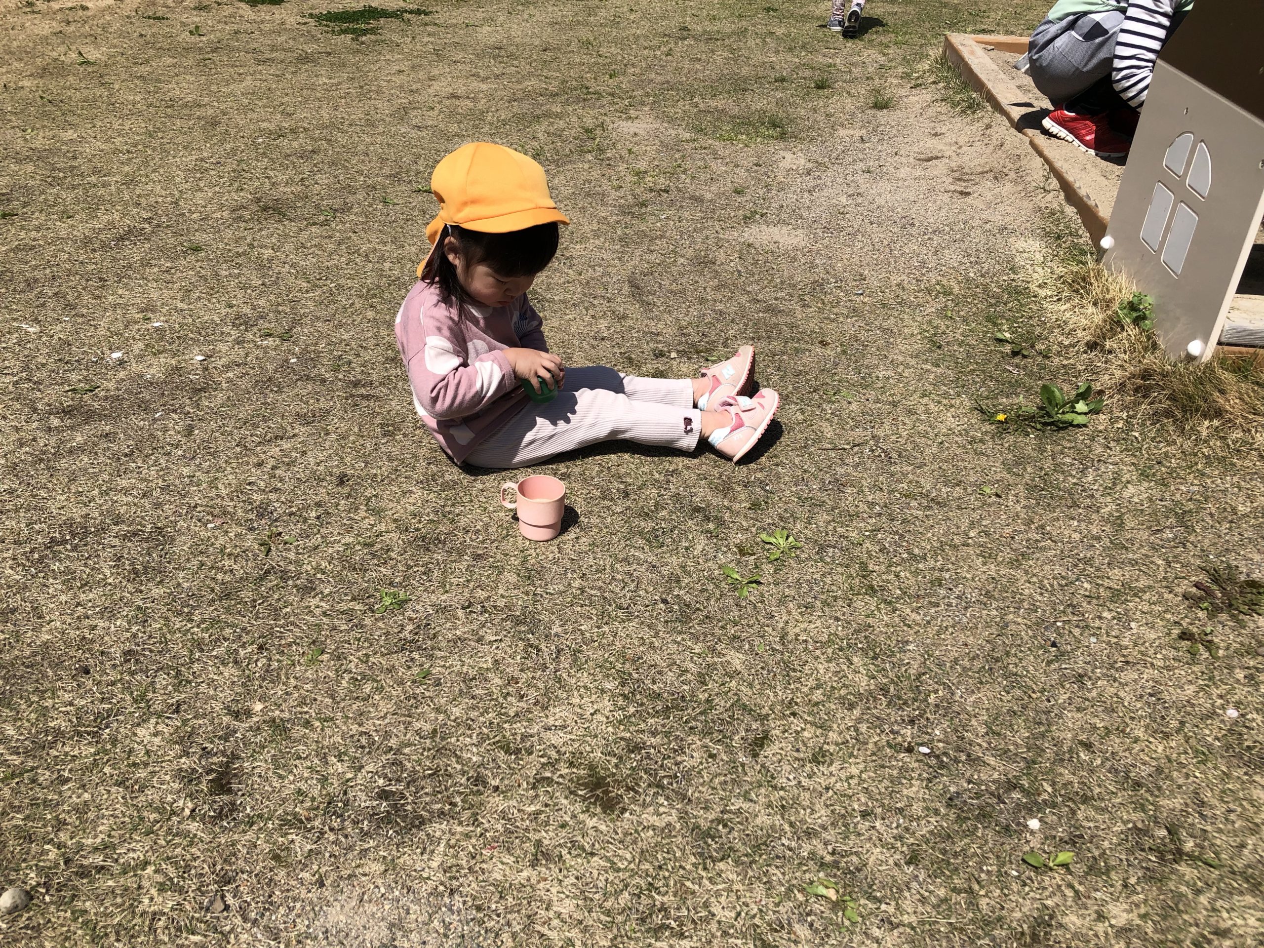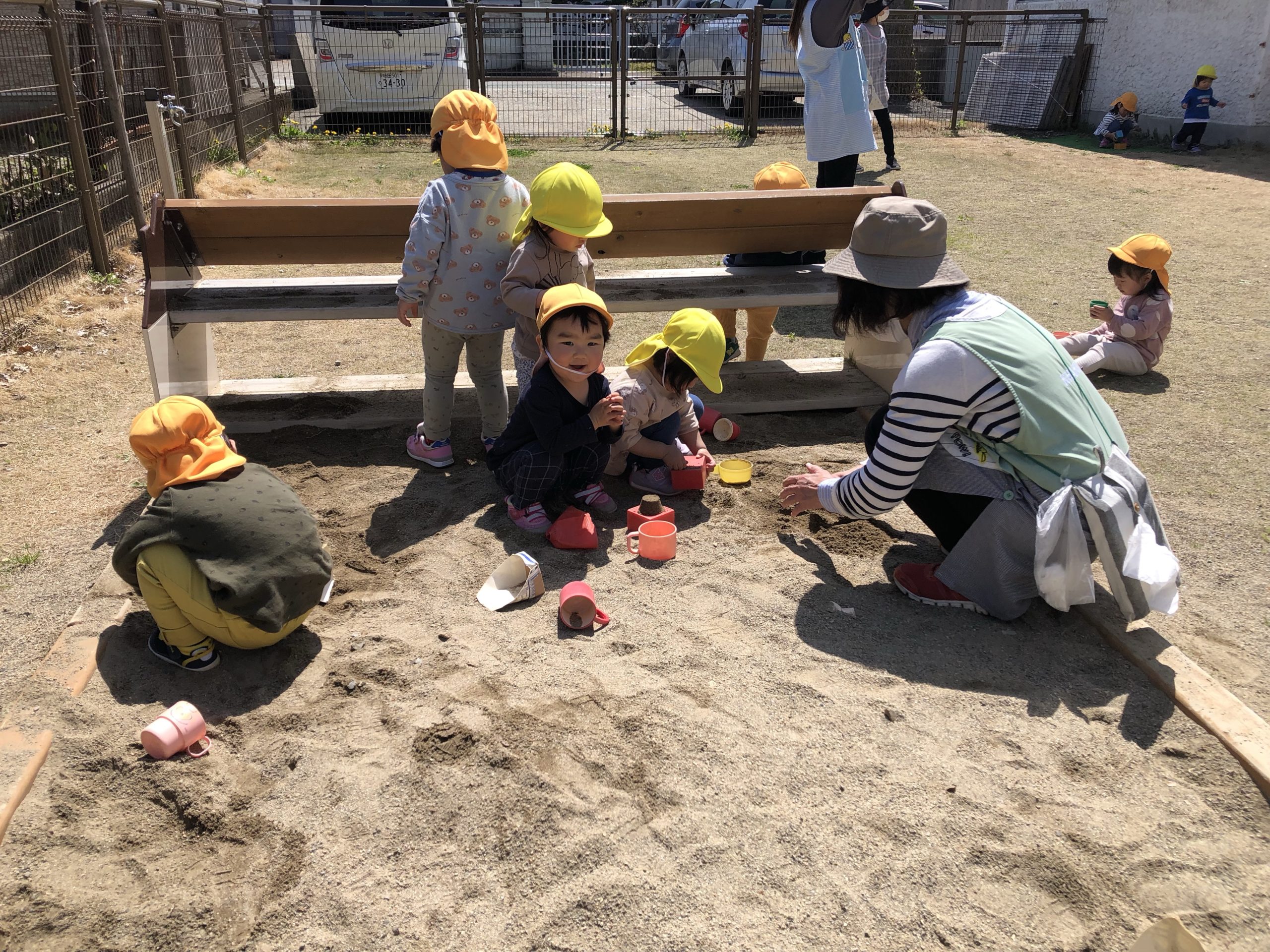外遊び(未満児クラス) 2022.04.28 桜の花は散りましたが庭には大きな木蓮の木が2本悠々と立っています。 今日、未満児クラスの子どもたちは園庭に出て、砂や滑り台を楽しんだり、かけっこしたりして元気いっぱいに遊びました。 砂場ではケーキ作りをして「どうぞ」「ありがとう」の可愛いやりとりが聞こえていました。