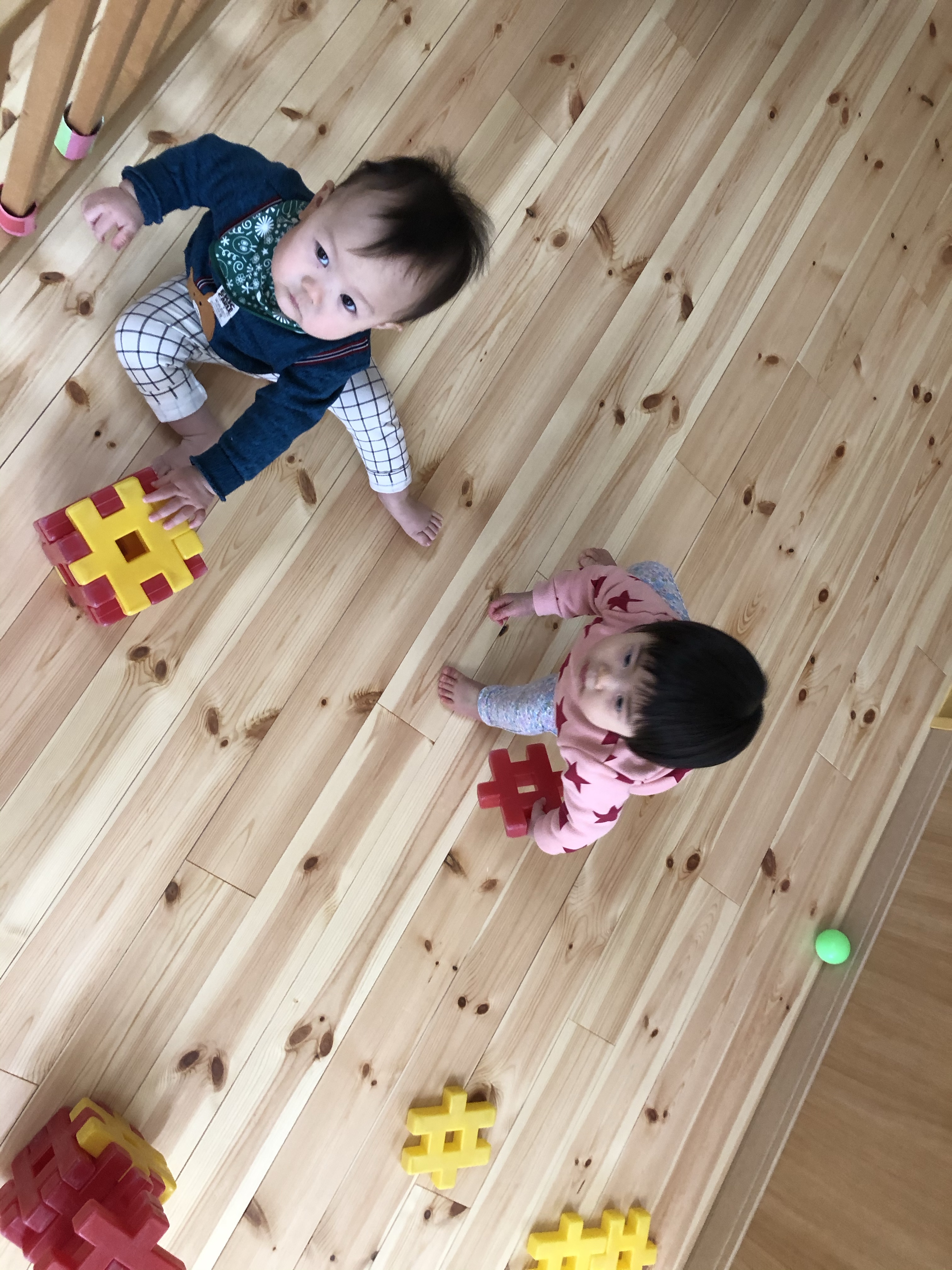 始業式の日もも組さんとすずらん組さんでは。 2020.01.15 始業式をする前にもも組を覗くと小ホールで楽しそうに遊んでいました。新しく入ったお友だちも先生と一緒に安心して遊んでいる様子がありました。 また、始業式後に小ホールを覗くと今度はすずらん組の子どもたちが遊んでいました。 カメラを向けると写して〜と寄ってきます。かわいい❤️